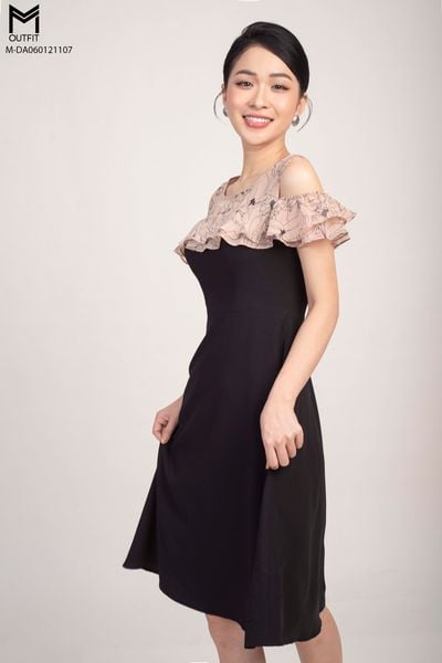 - Đầm chữ A trễ vai đen: Với thiết kế trễ vai quyến rũ cùng điểm nhấn ở vòng eo sẽ giúp bạn tôn lên đường cong của cơ thể