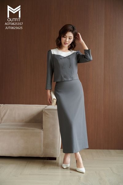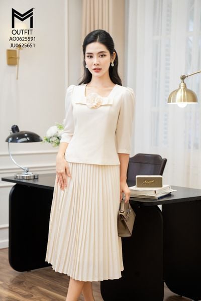 Chân váy dáng A cạp ốp diễu mix với áo AOT0825357
