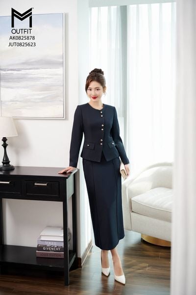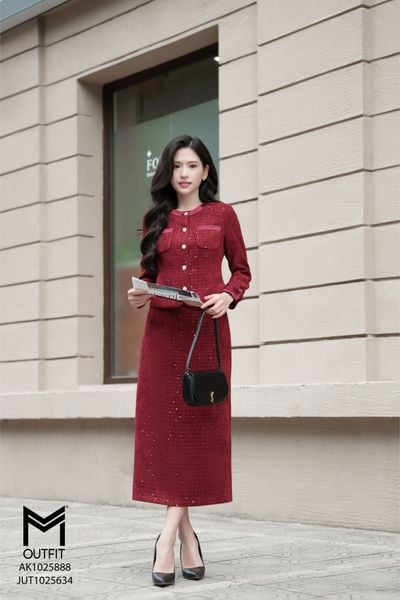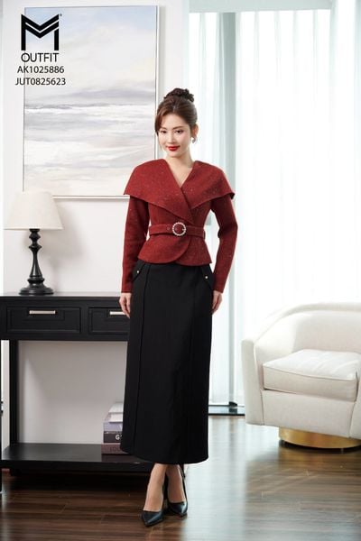 Chân váy dạ kim sa dáng A mix với áo vest AV1025907