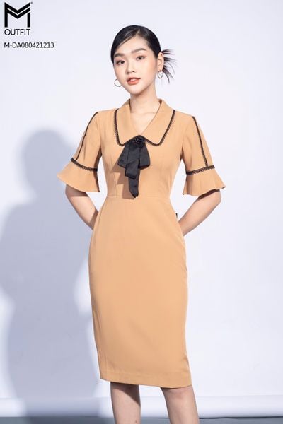 Đầm Suông Tà Lệch Thắt Đai Lưng Da
