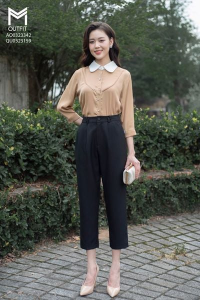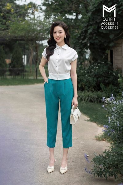 Quần dáng baggy, cúc bọc