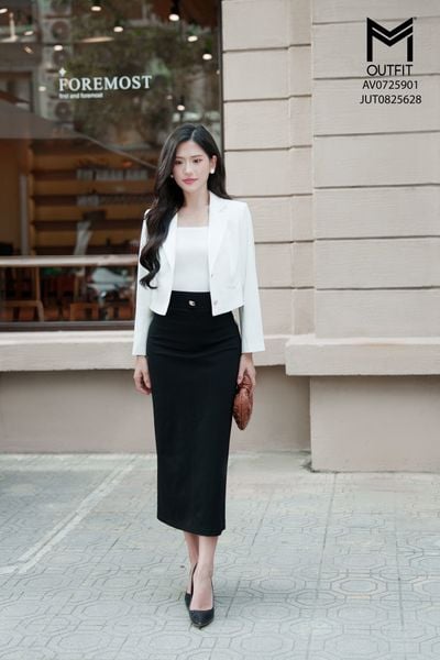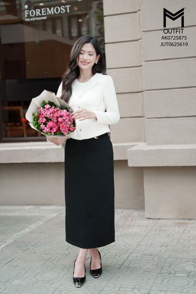 Chân váy bút chì thẳng mix với áo AOT0825355