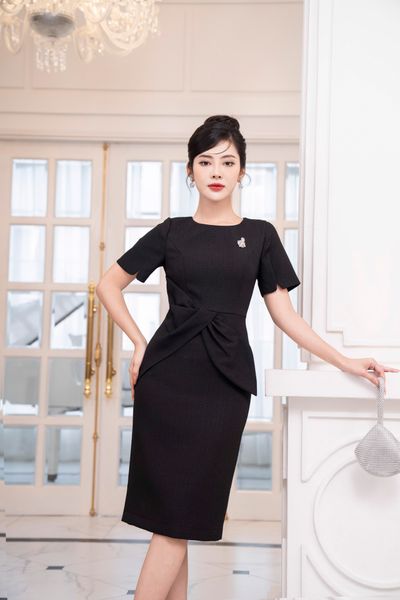 Đầm dáng bút chì thẳng, tà bong đính đá TT