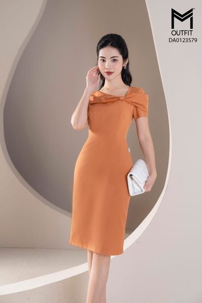 Đầm dáng bút chì thẳng, nơ bong