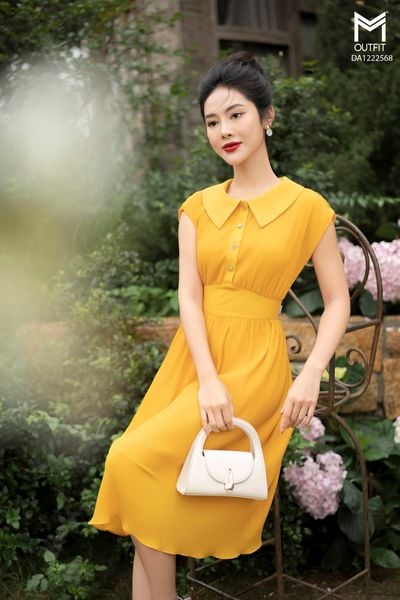 Đầm dáng A, tay hến, dập ly tăm