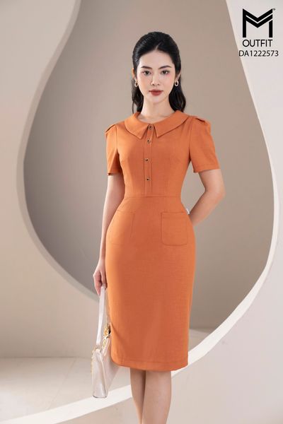 Đầm dáng bút chì thẳng, cổ sen