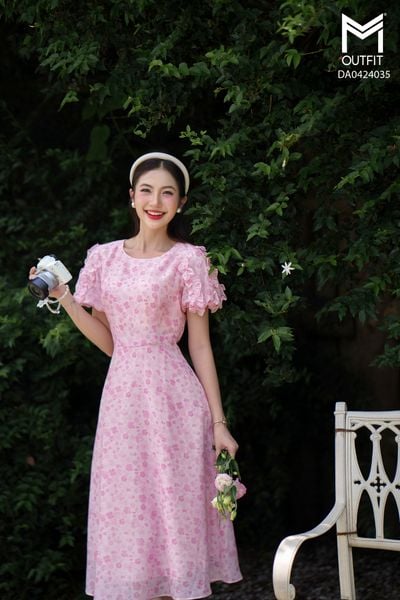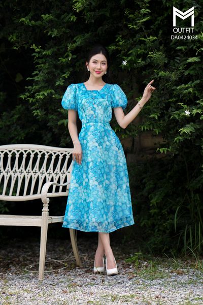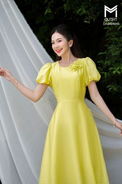 Đầm xòe cổ xếp nếp to tay lồng đèn
