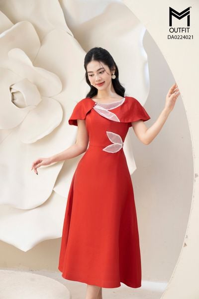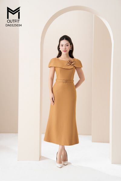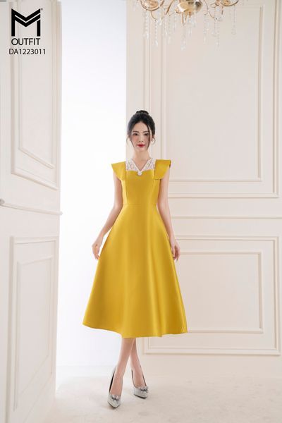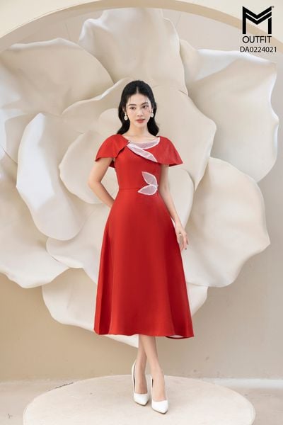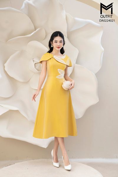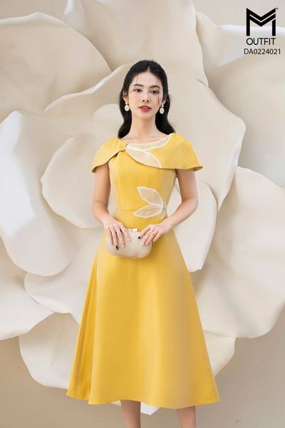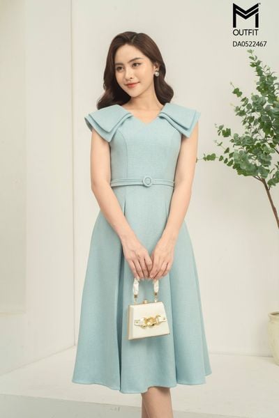 Đầm xòe, đai rời, cồ 2 lá