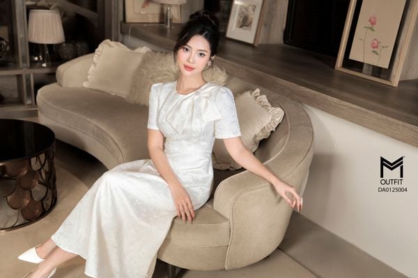 Đầm sát nách, dáng xòe, nơ vai