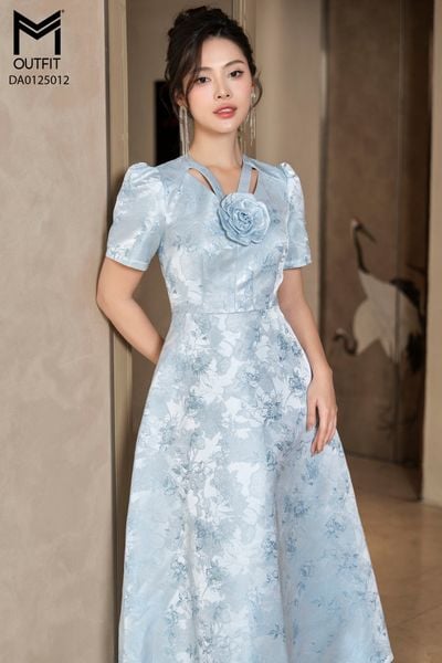 Đầm tiệc xòe cổ đính hoa