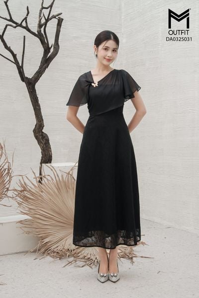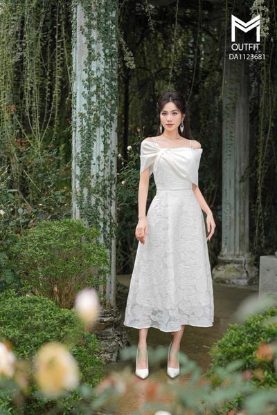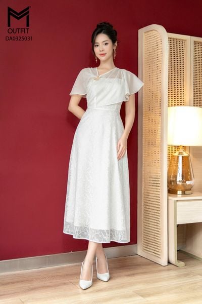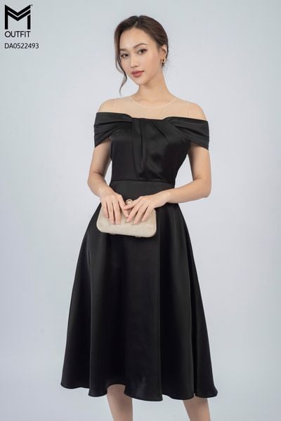 Đầm dáng xòe, trễ vai có lưới