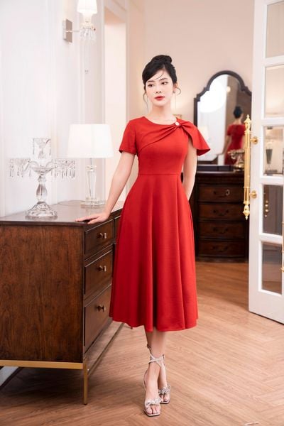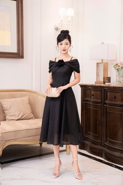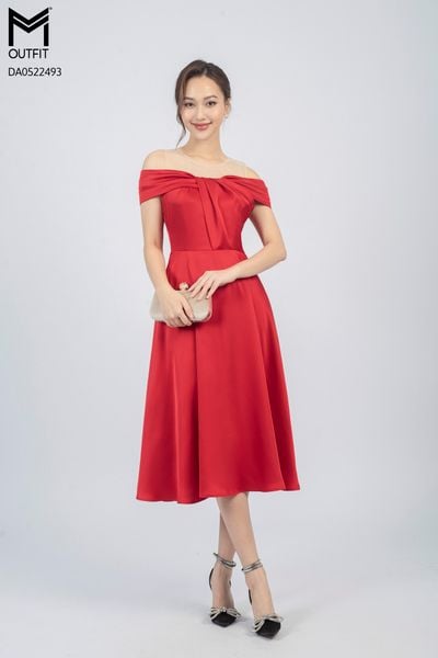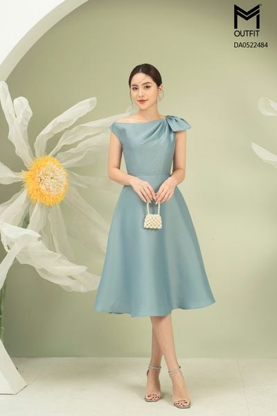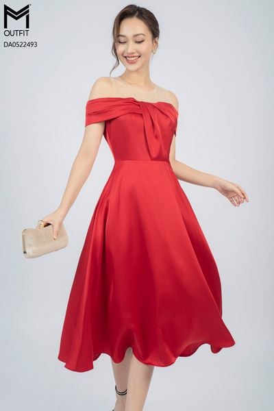 Đầm dáng xòe, lệch vai