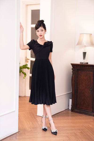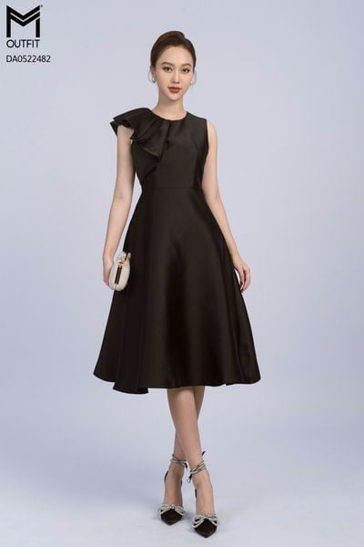 Đầm sát nách, dáng xòe, tà bong xếp ly 1 bên