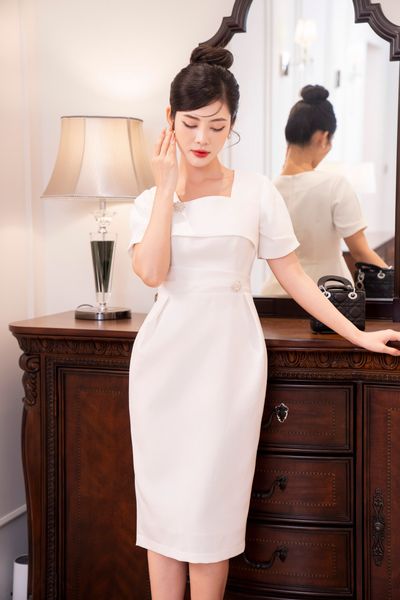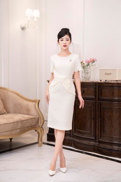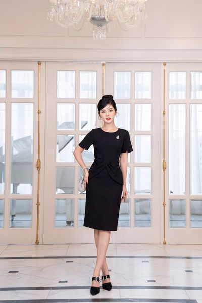 Đầm dáng bút chì thẳng, tà bong đính đá TT