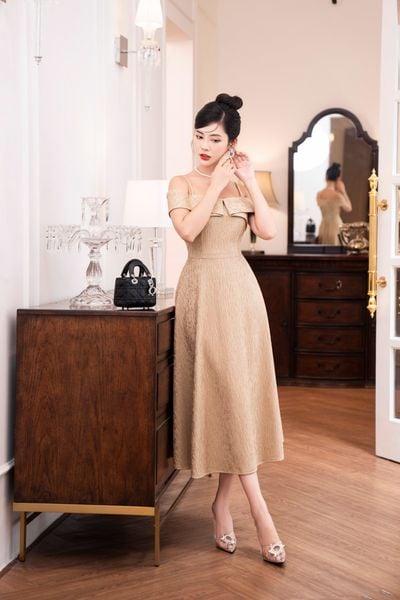 Đầm dáng A, trễ vai