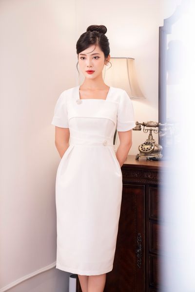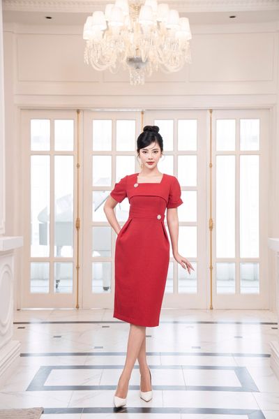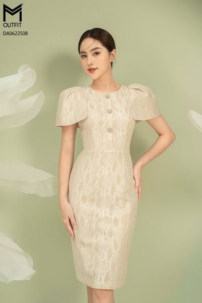 Đầm dáng bút chì, đính cúc đá TT