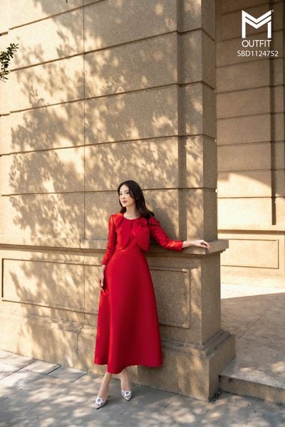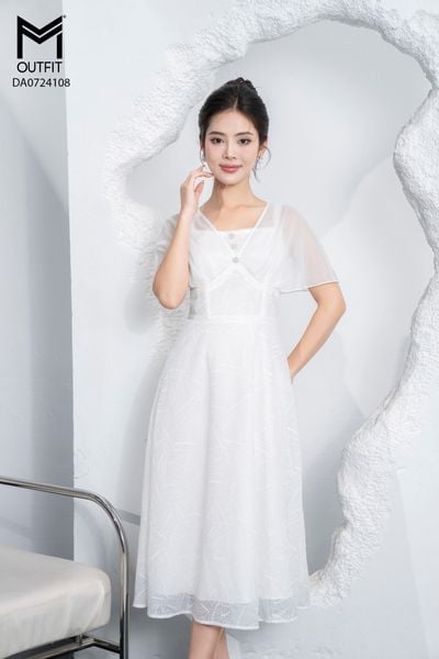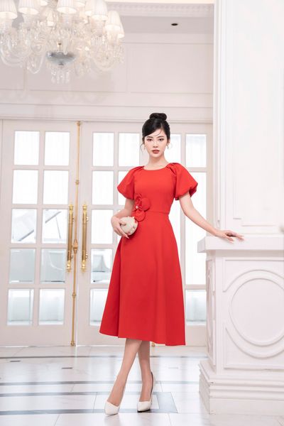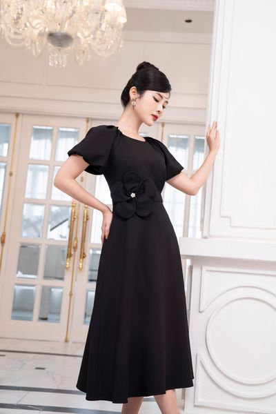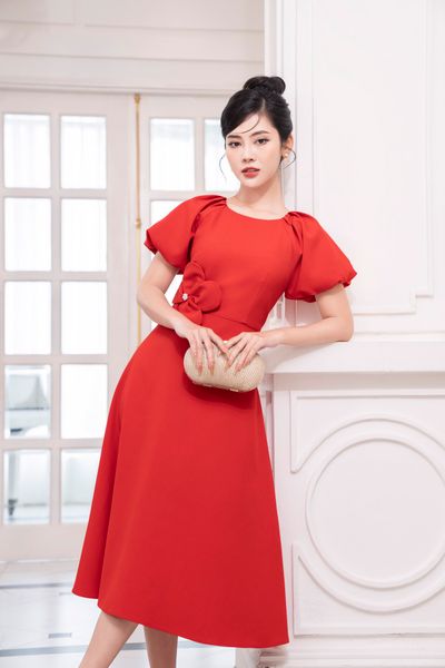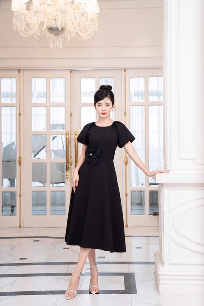 Đầm dáng xòe, tay bồng đính hoa TT