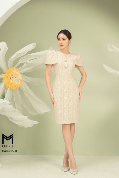Đầm ren dáng ôm, khóa đồng