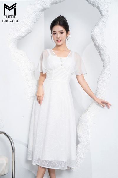 Đầm dáng xòe, tà bong đính hoa TT