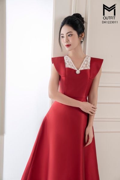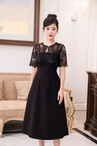 Đầm tiệc dáng xòe , cổ ren đỉnh đá
