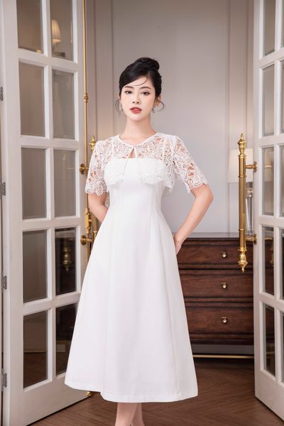 Đầm dáng A phối ren cổ