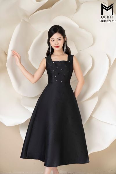 Đầm dáng xòe, đính hoa TT