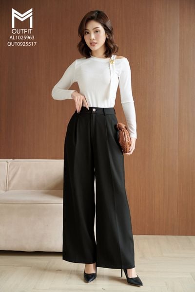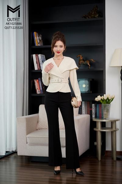 Quần ống vẩy túi đính cúc trang trí mix với áo AO0325335