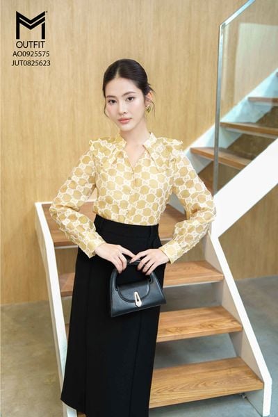 Áo kí giả cổ bản to mix với chân váy JUT0825622