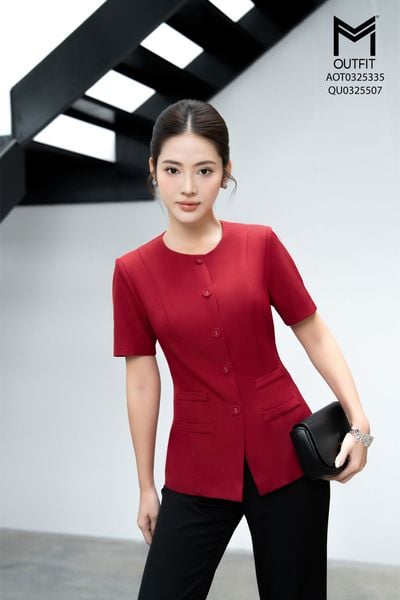 Áo sơ mi cộc tay cổ đức ôm eo