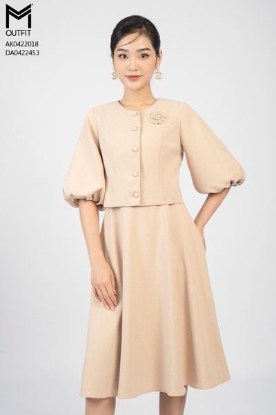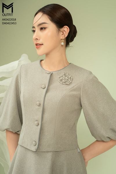 Áo khoác cổ tròn, tay lồng đèn đính hoa TT