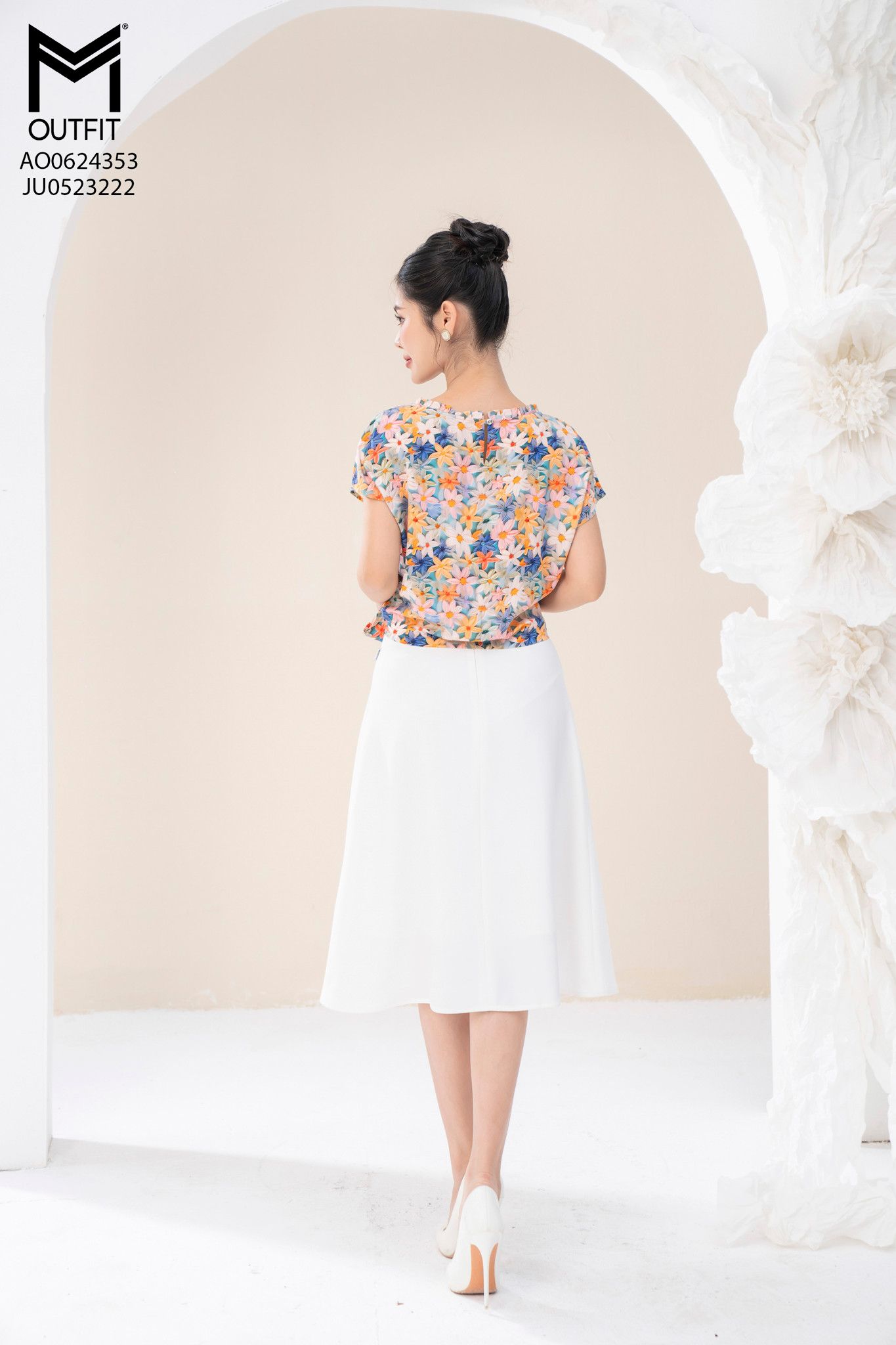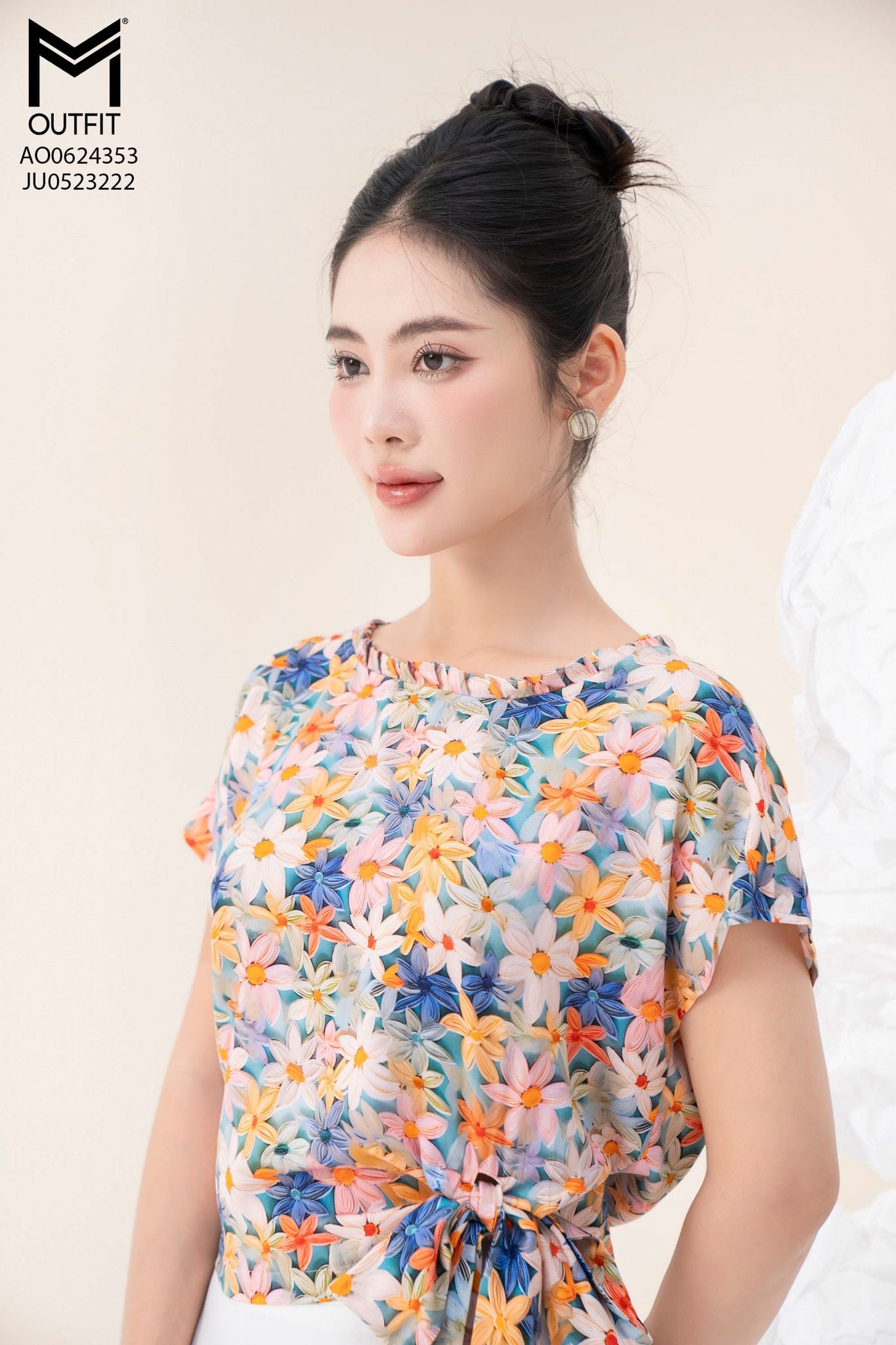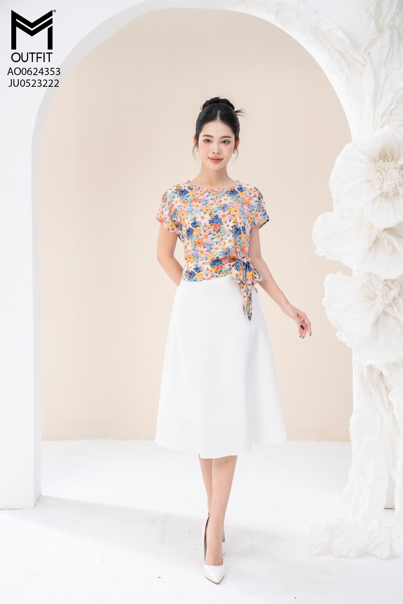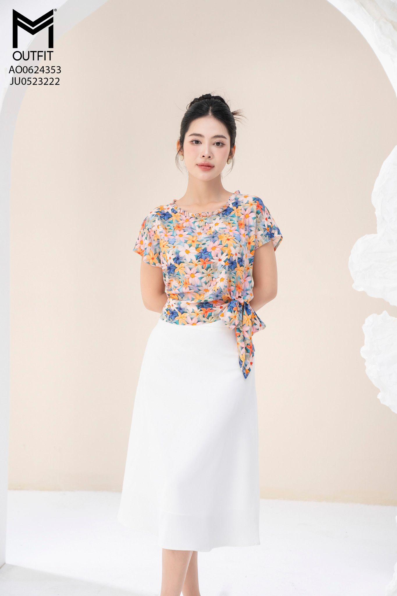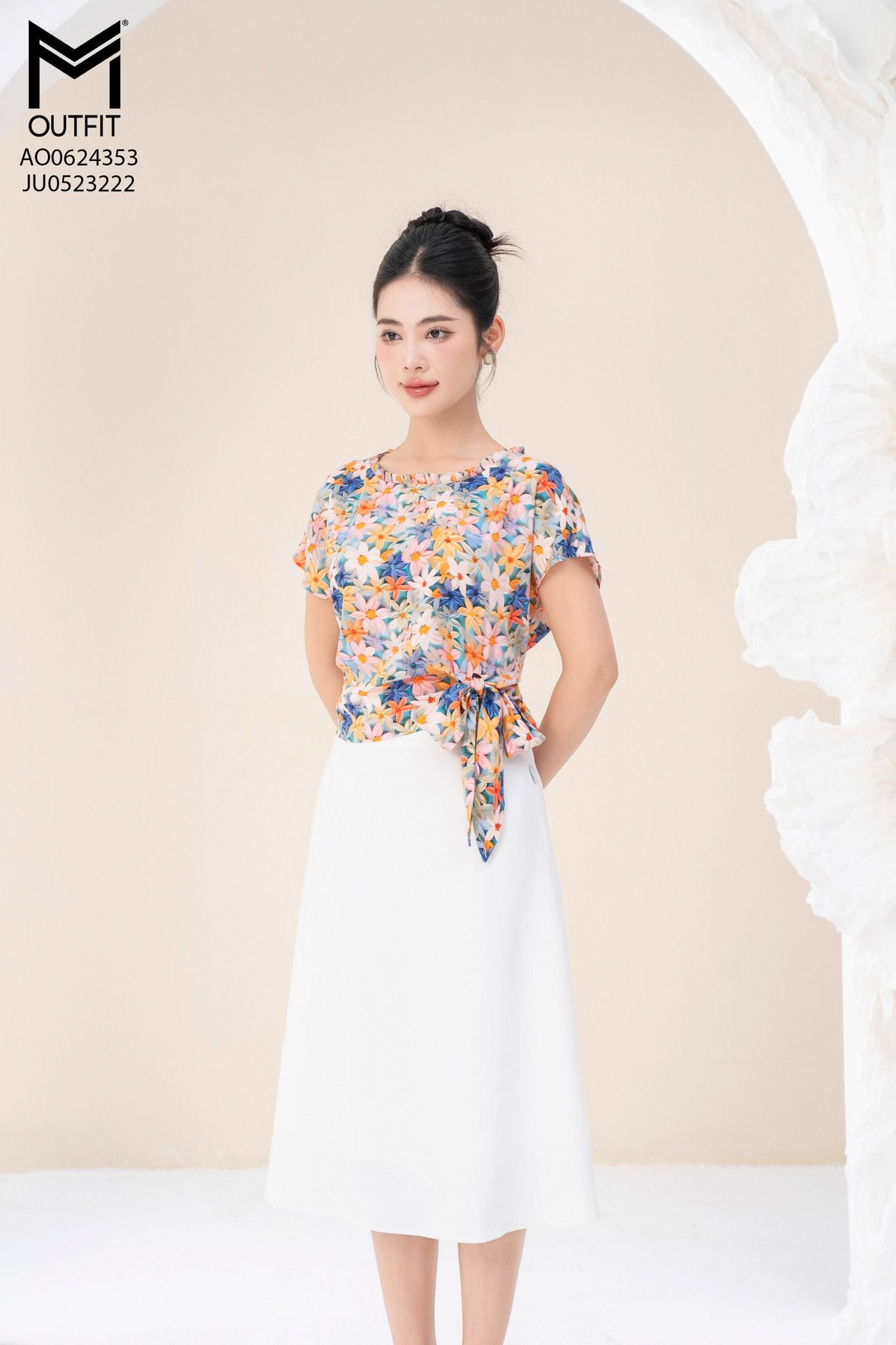 | Đặc điểm | Áo cộc tay cổ bèo xếp buộc nơ eo |