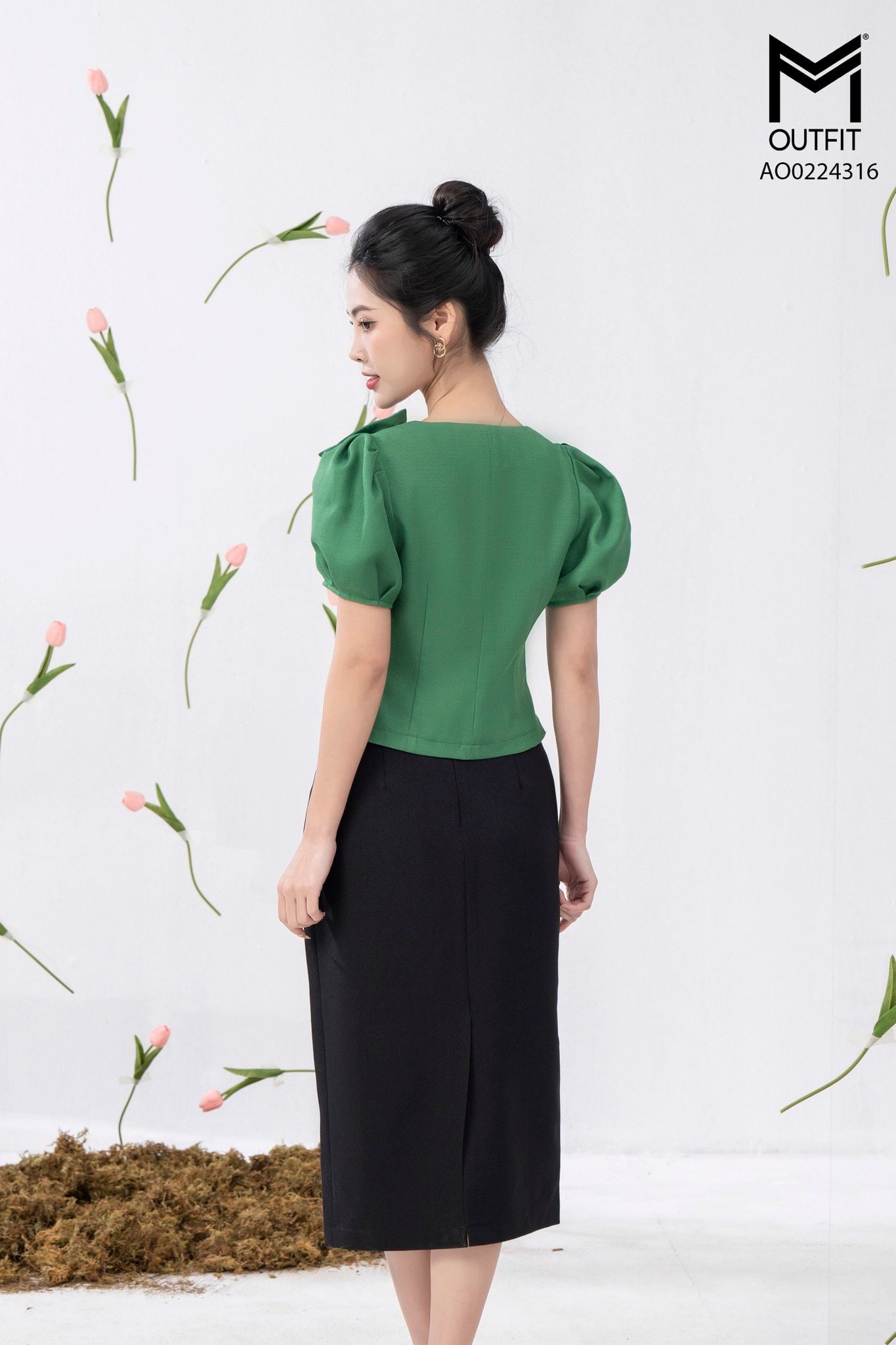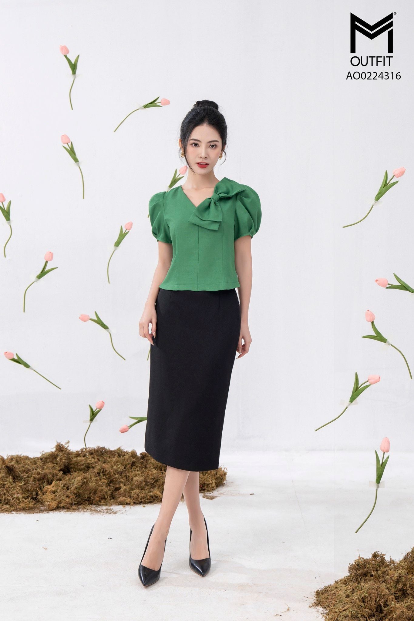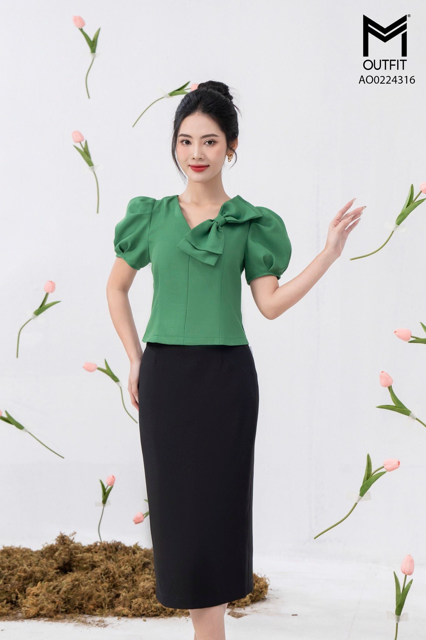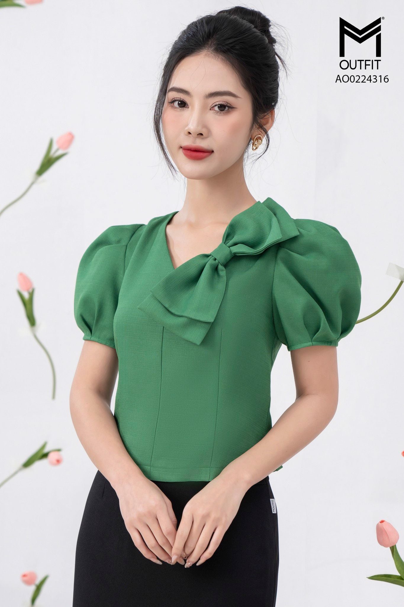 | Đặc điểm | Áo crotop, cổ đính nơ |