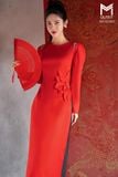 Áo dài cổ tròn, can lưới da đính hoa TT