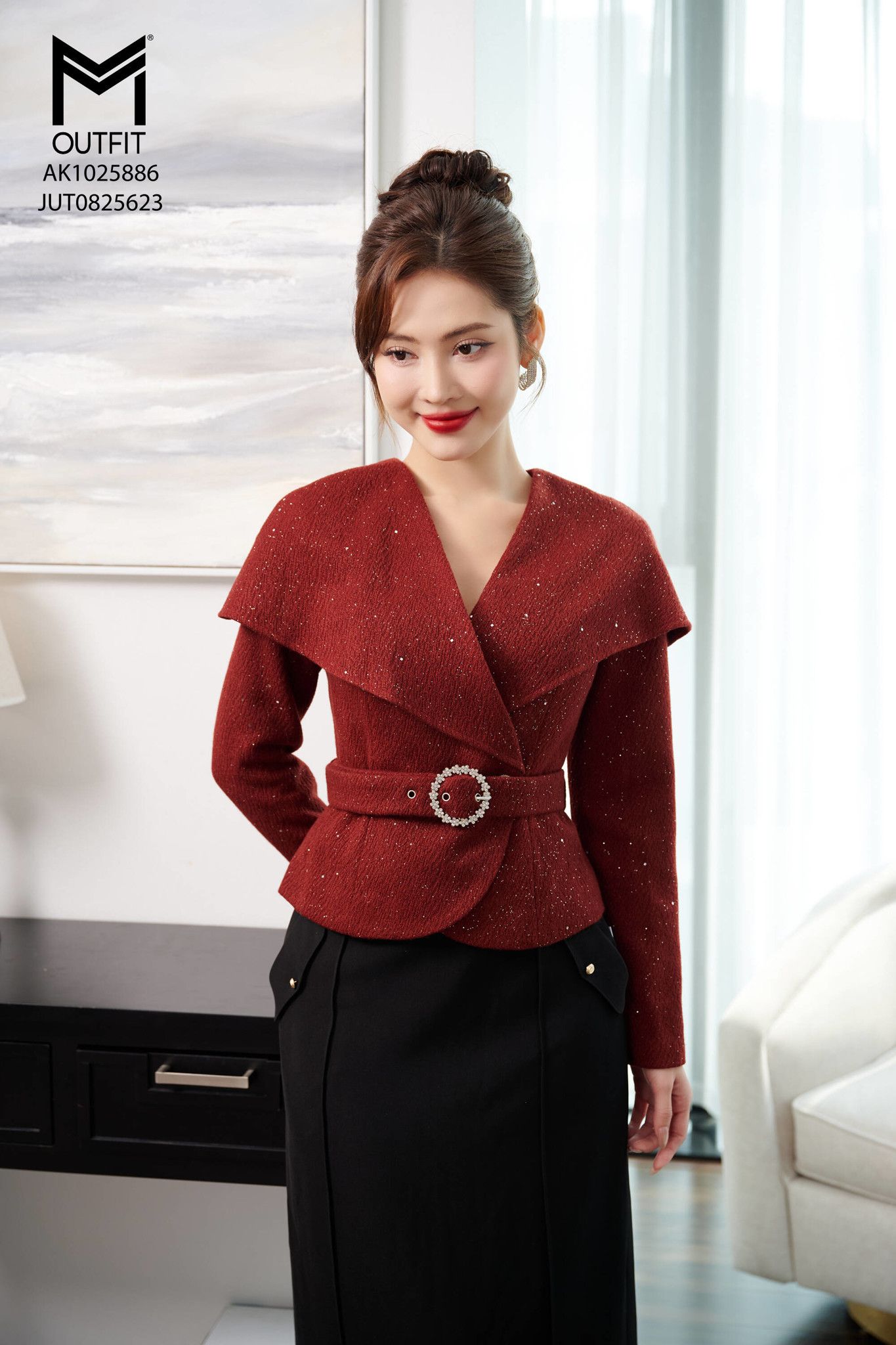 | Đặc điểm | Áo khoác choàng dáng ngắn có đai eo |