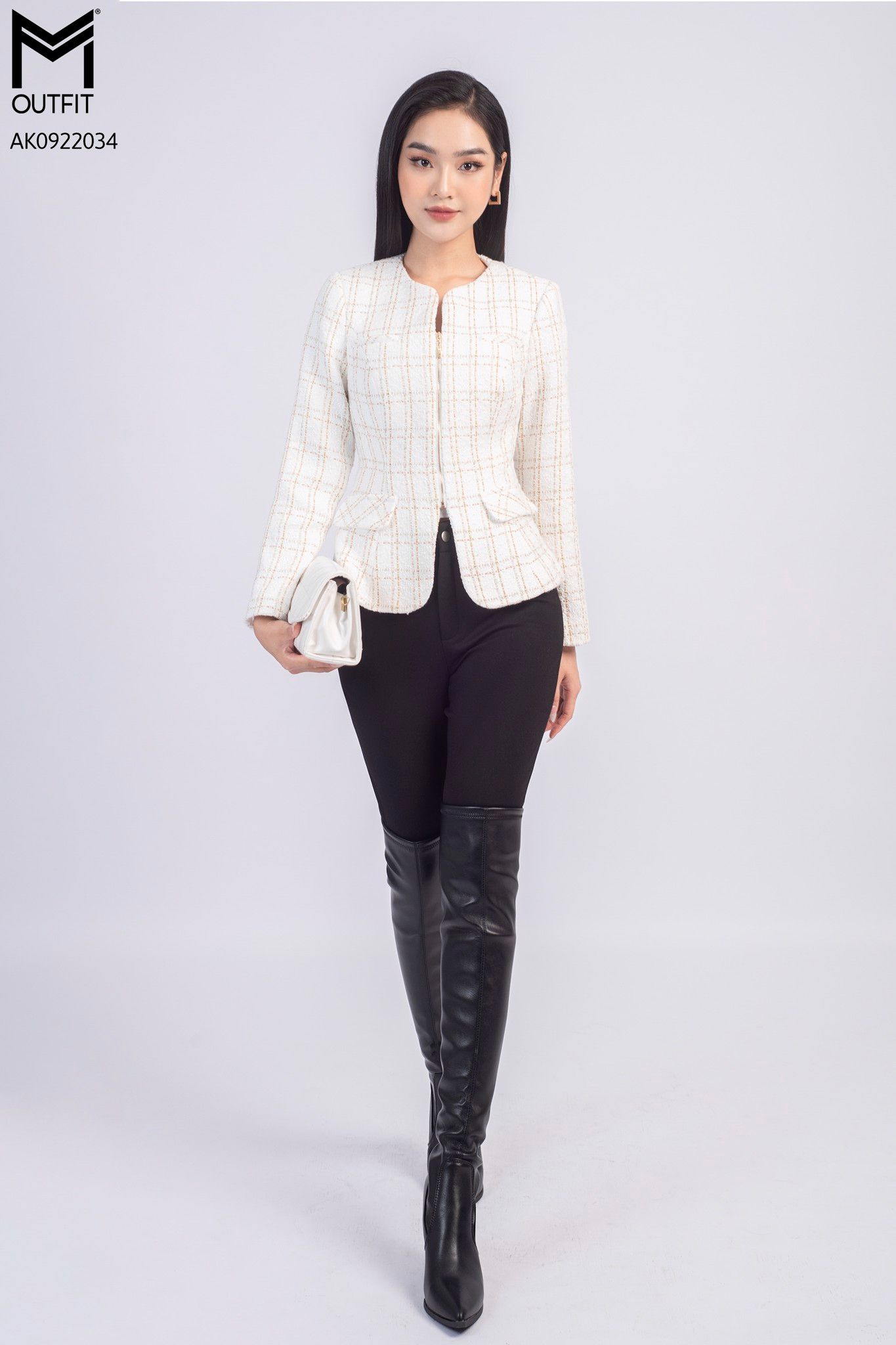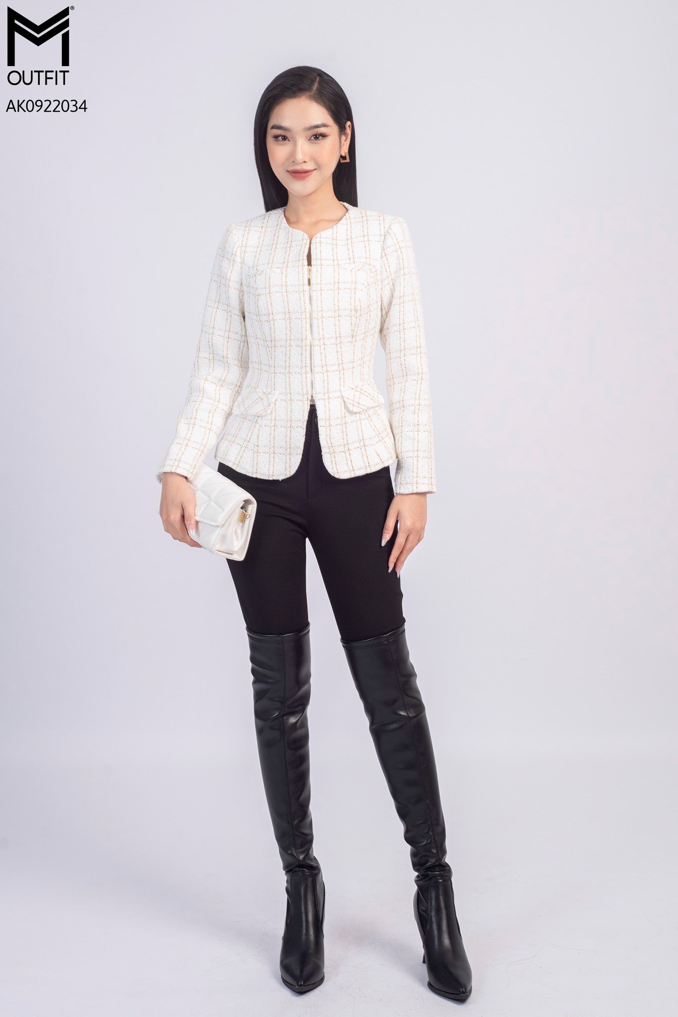 | Đặc điểm | Áo khoác cổ tròn, khóa đồng |