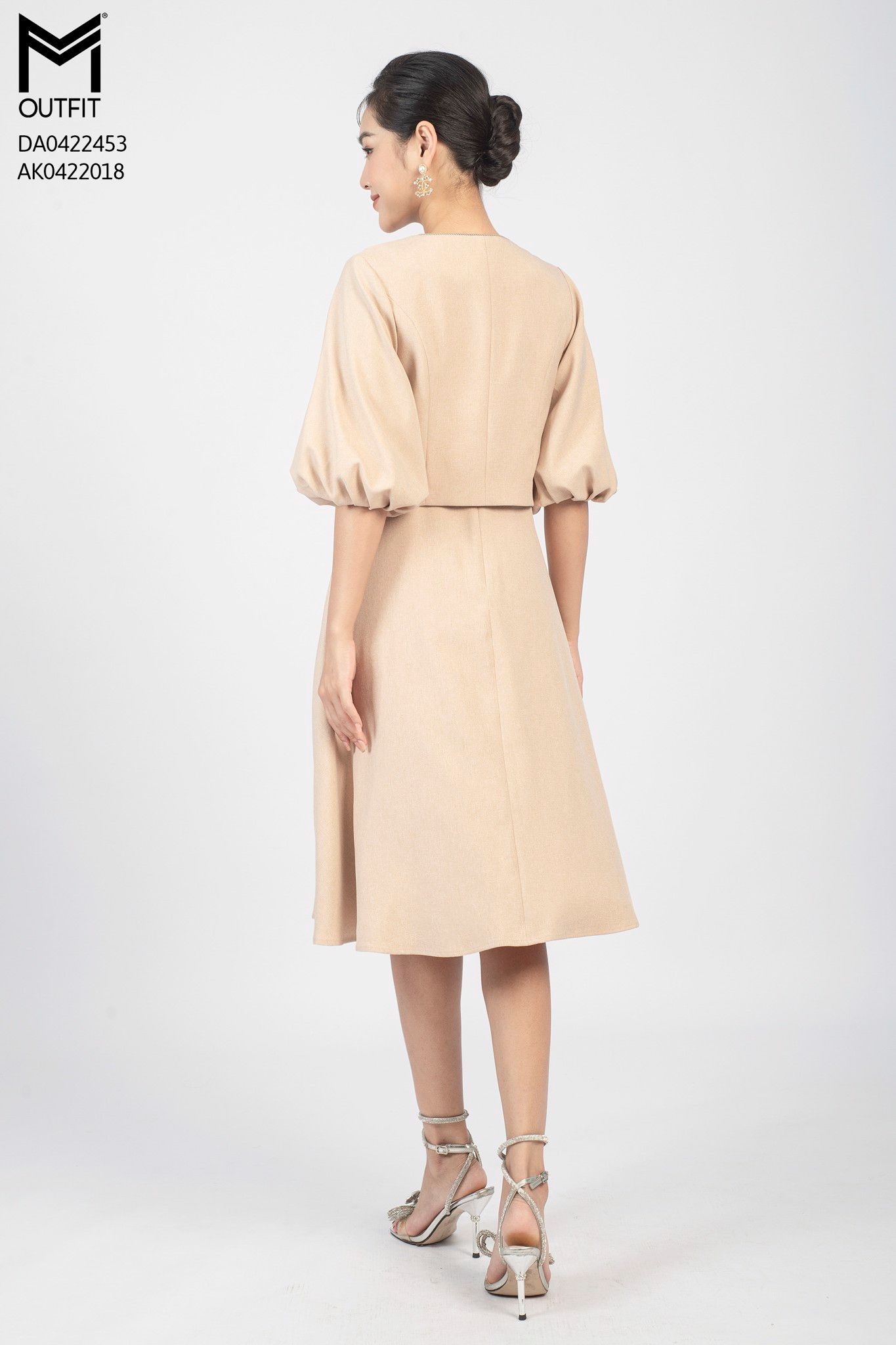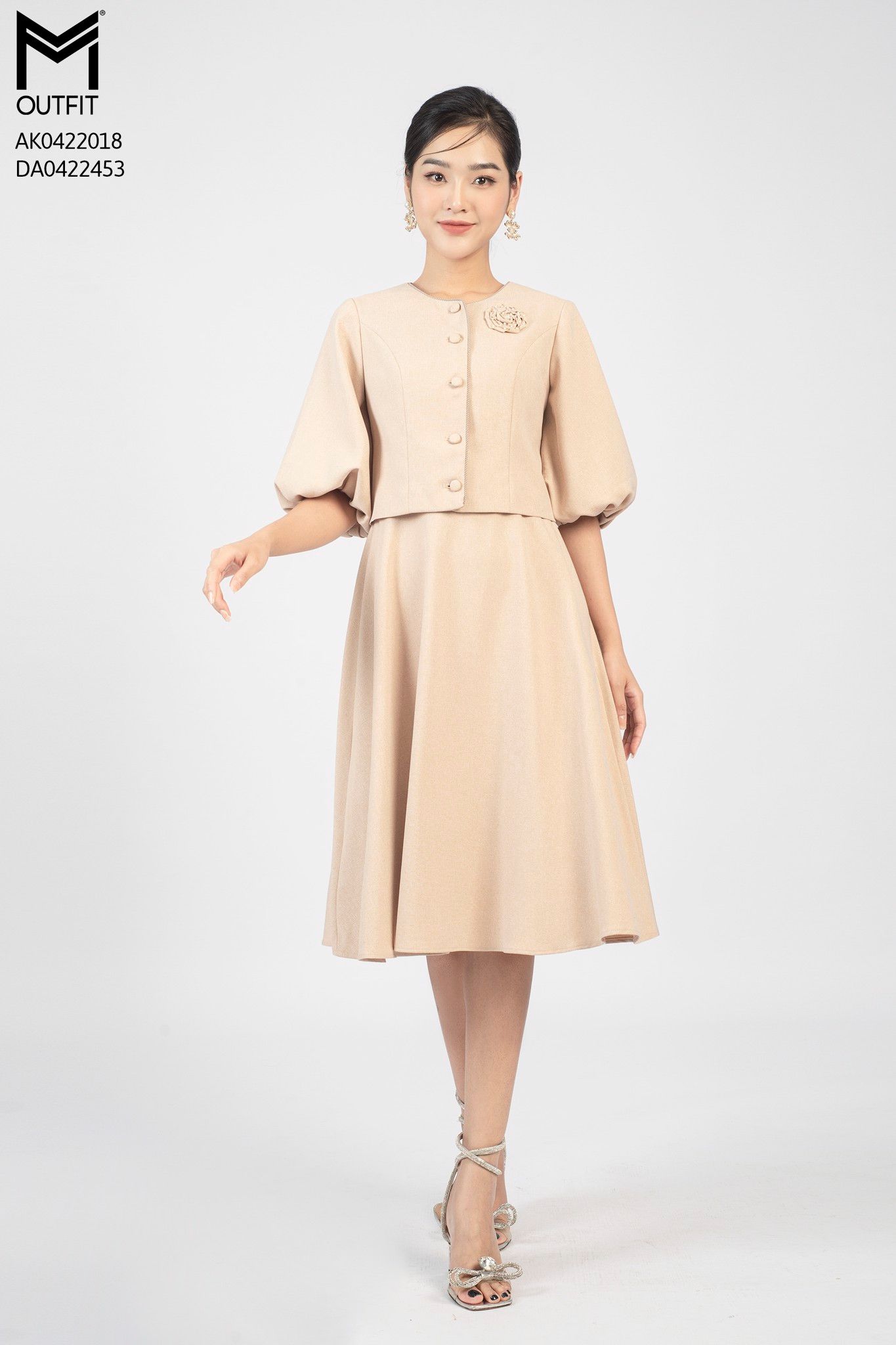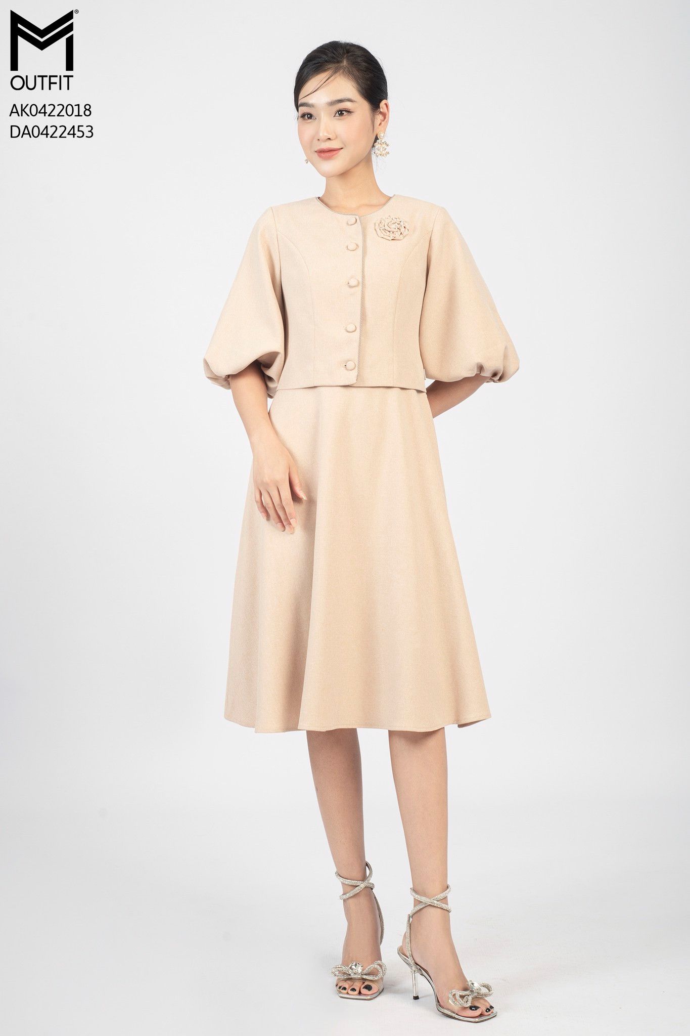 | Đặc điểm | Áo khoác cổ tròn, tay lồng đèn đính hoa TT |