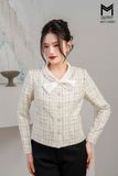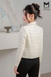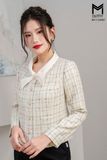 Áo khoác dạ tweed dáng suông eo cổ phối lụa trắng