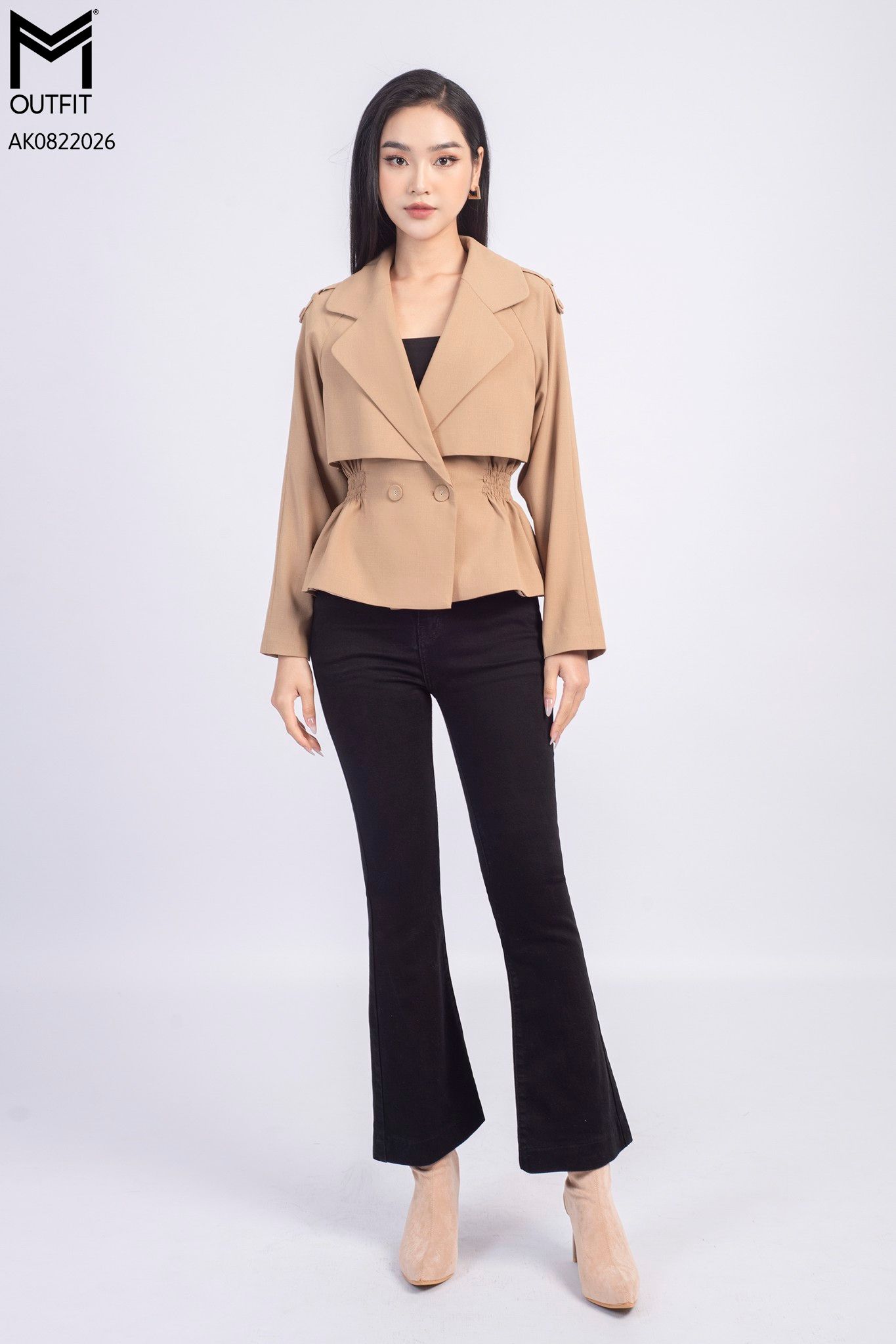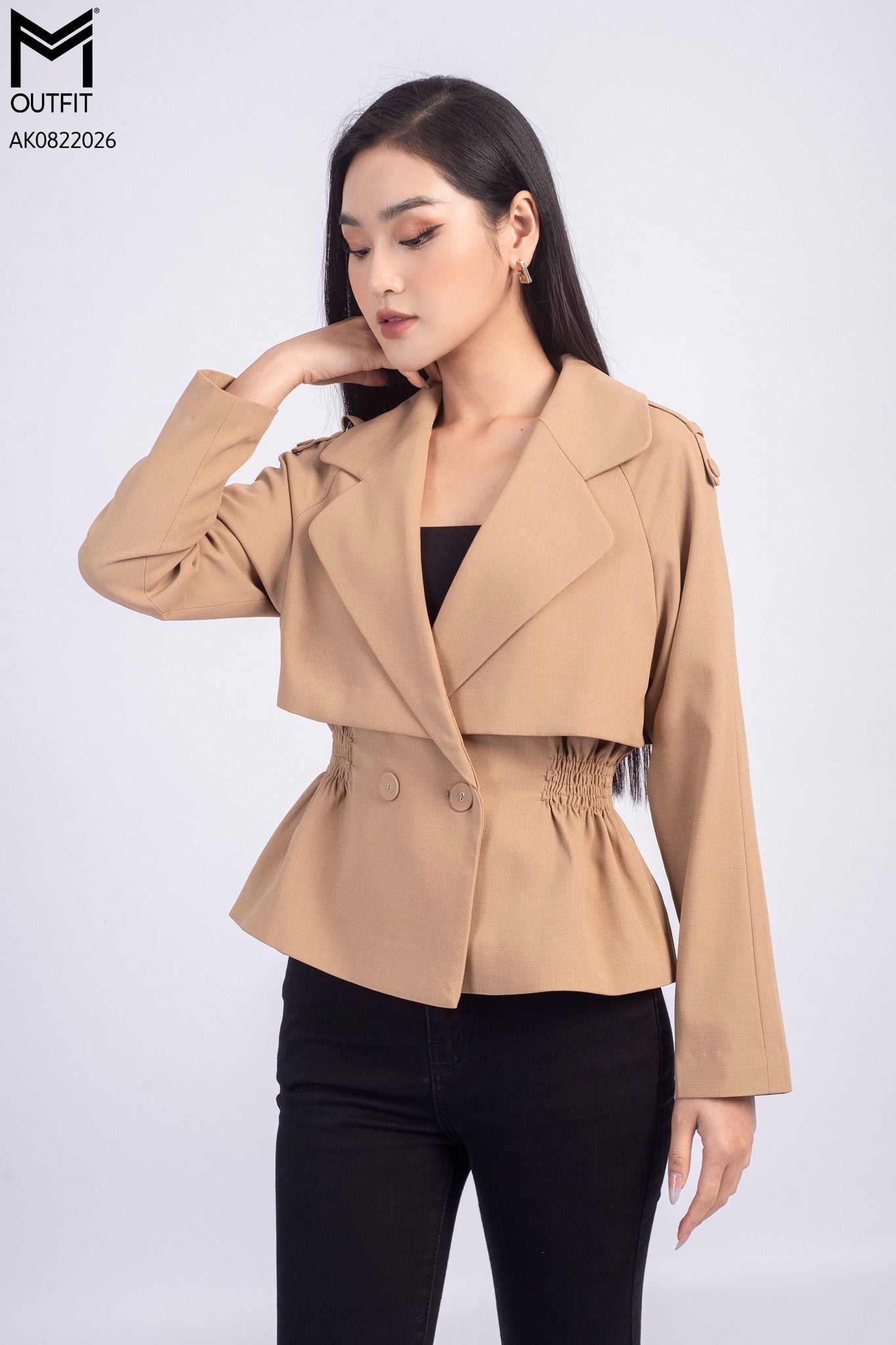 Áo khoác tà bong, chun nhún eo