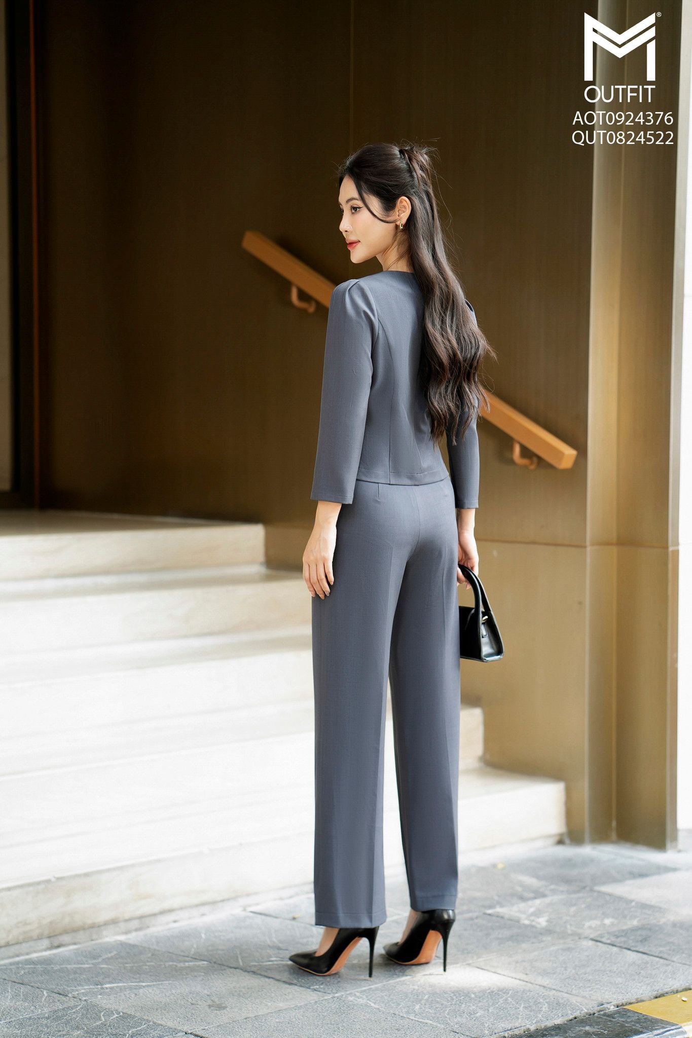 | Đặc điểm | Áo kí giả cổ tròn tay lỡ nhún bồng vai mix với quần QUT0824522 |