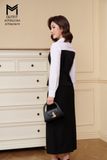 Áo kí giả phối cổ và tay trắng thân đính cúc kim loại