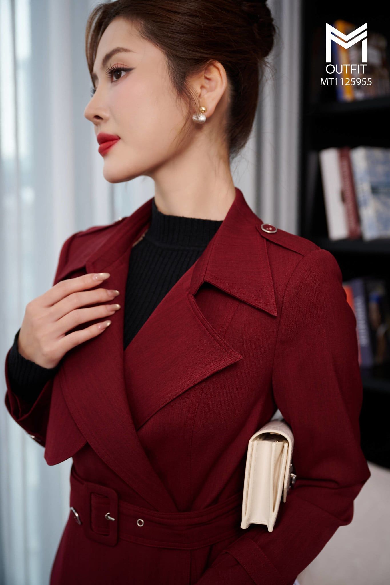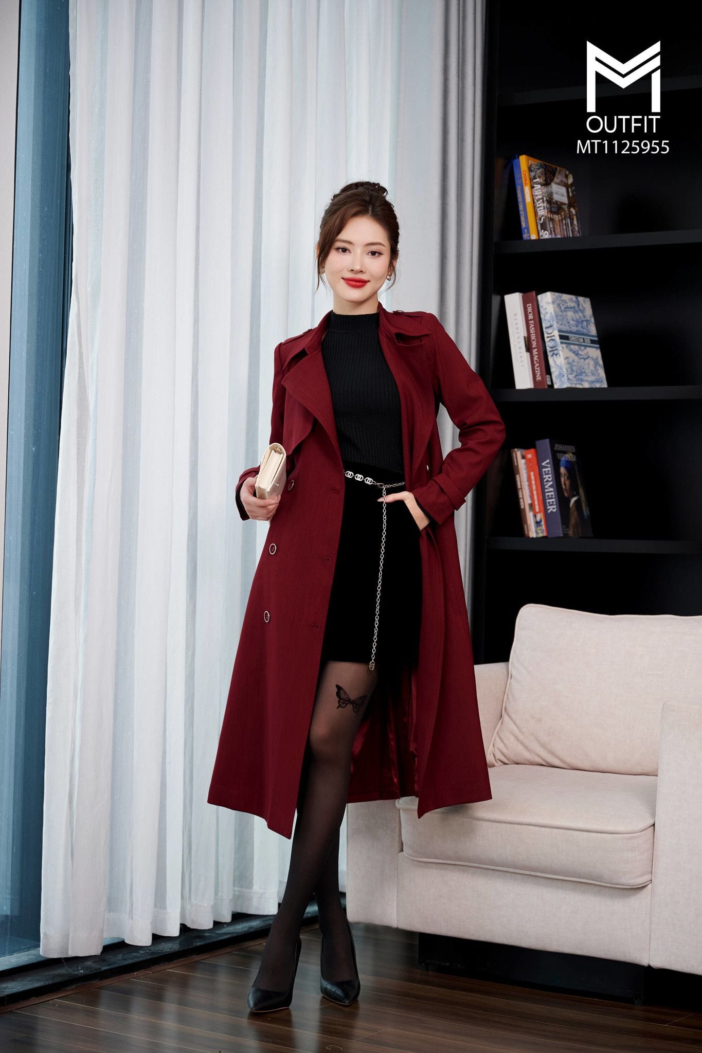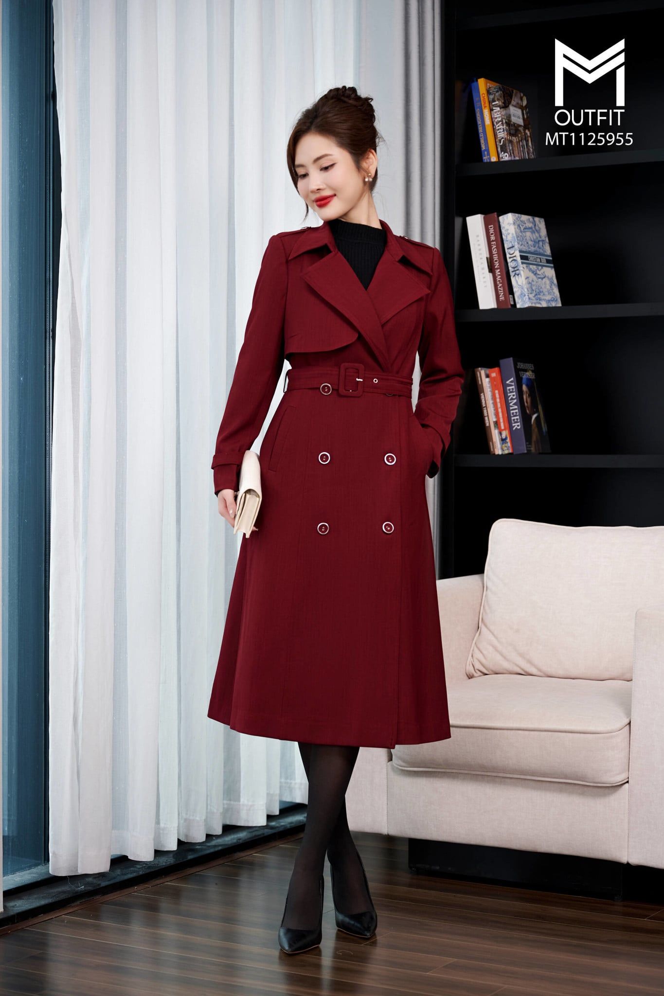| Đặc điểm | Áo măng tô dáng eo dài có đai cài |