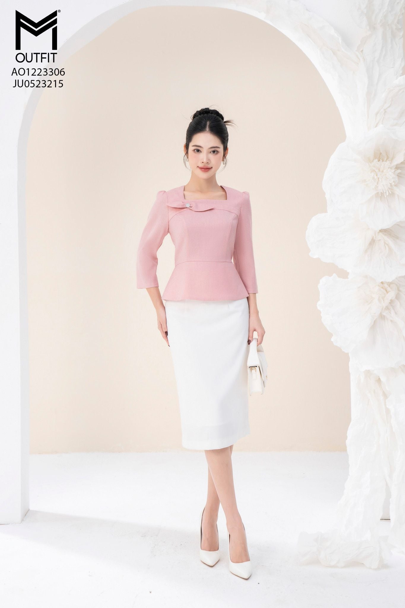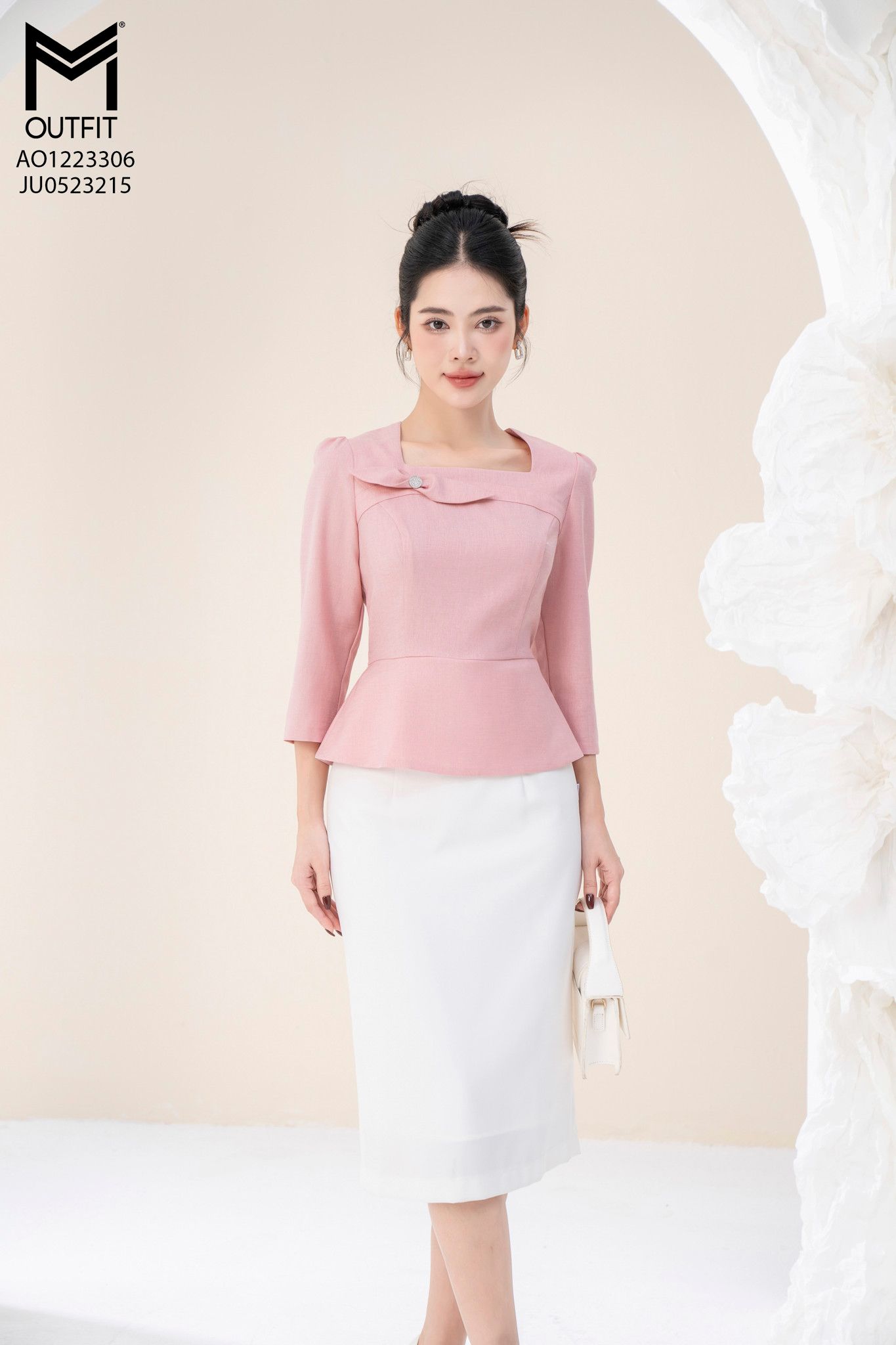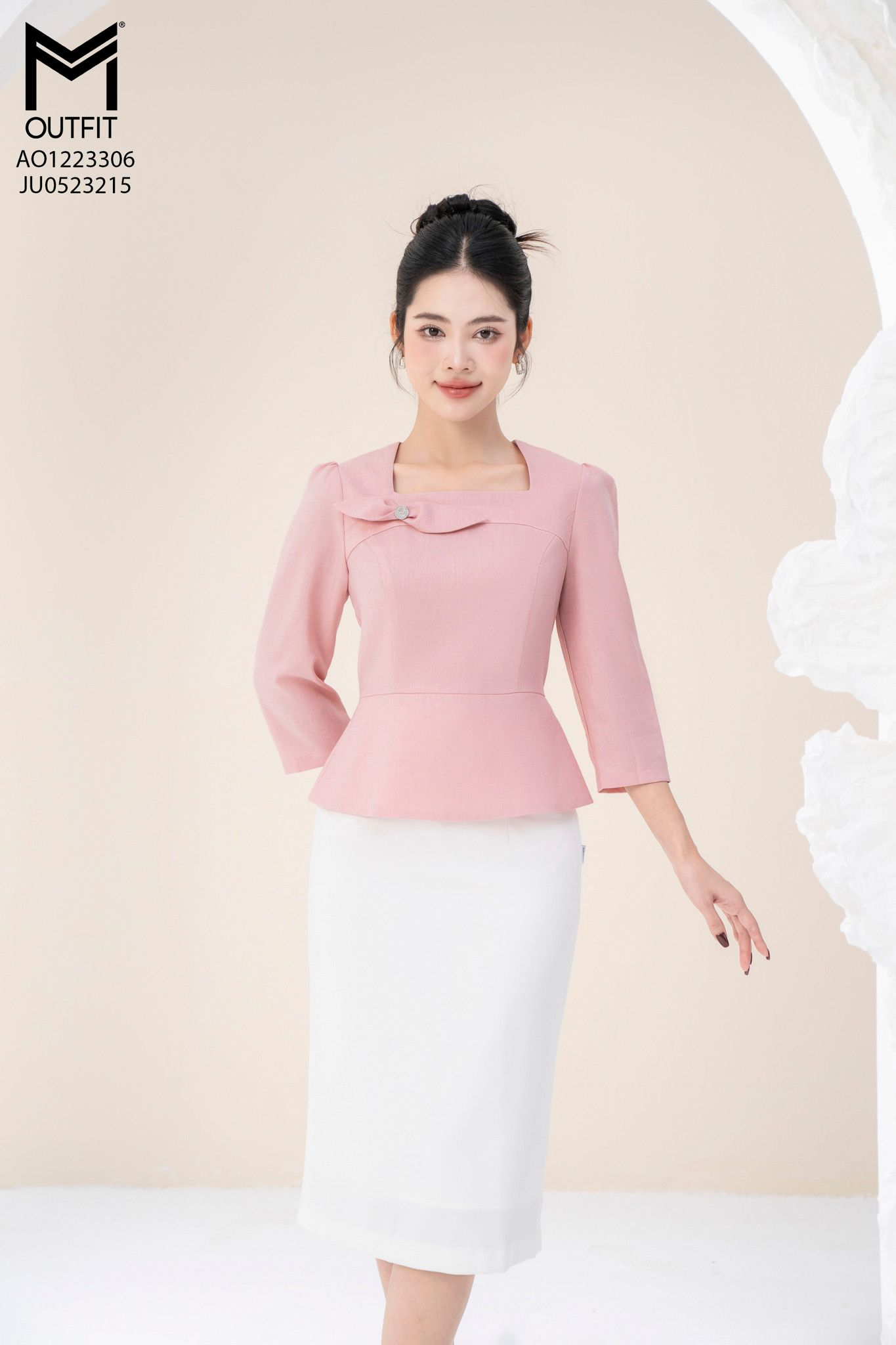 | Đặc điểm | Áo peplum tay lỡ cổ vuông đính nơ |
