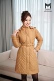 Áo phao dài dáng ôm có mũ, có đai cài