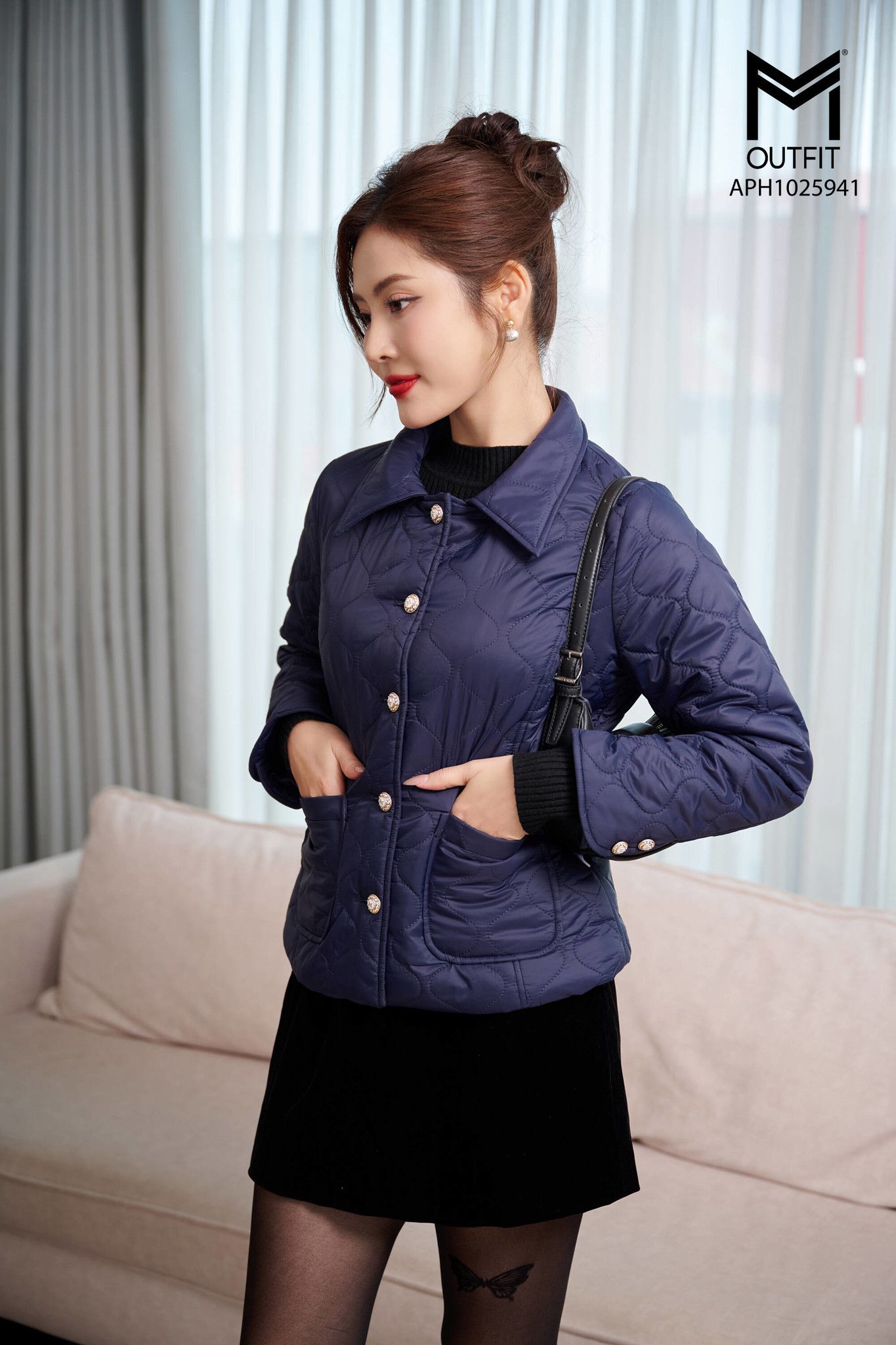 | Đặc điểm | Áo phao dáng ngắn cổ bẻ có túi trước than và tay áo đính cúc đá |