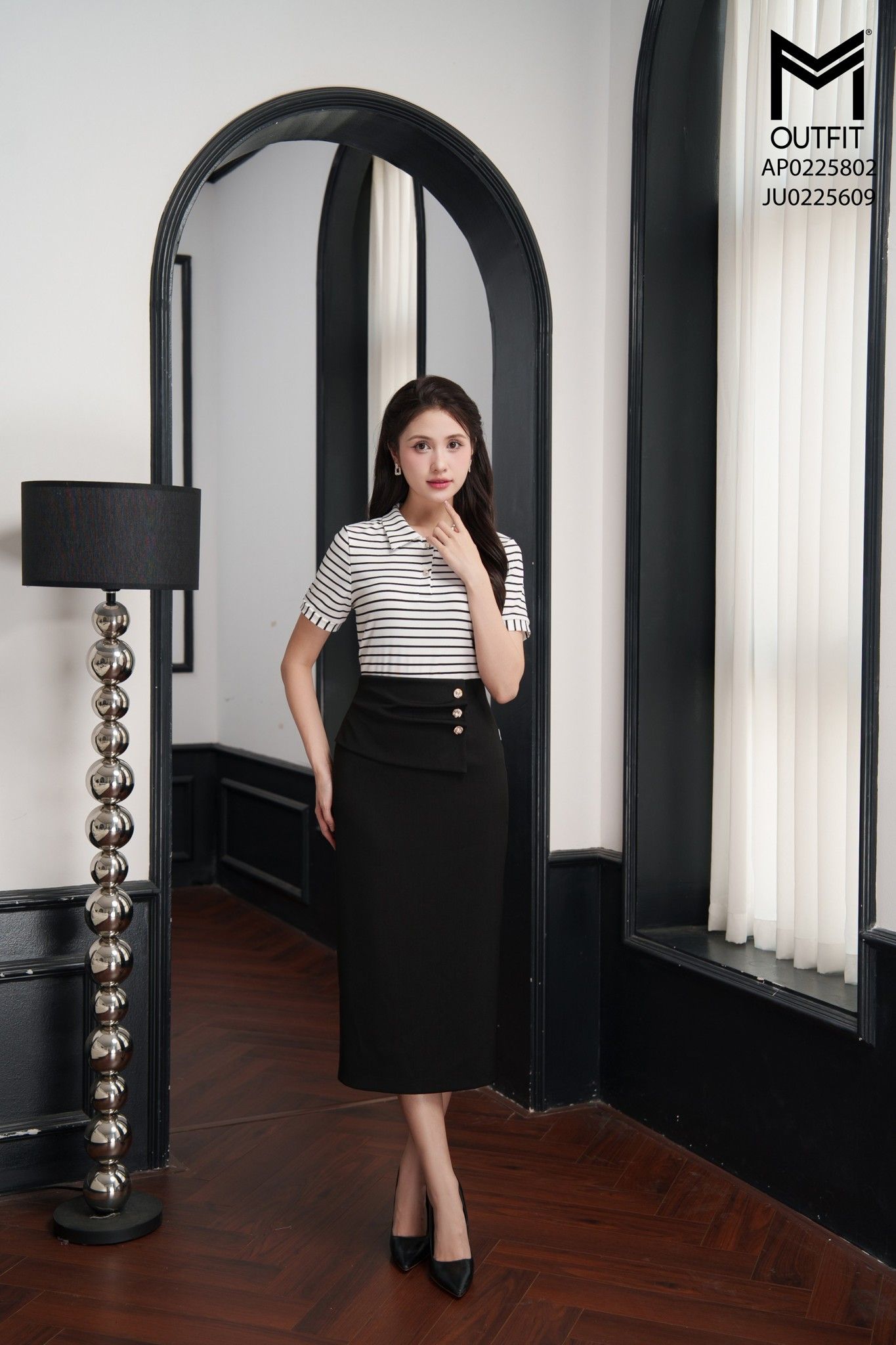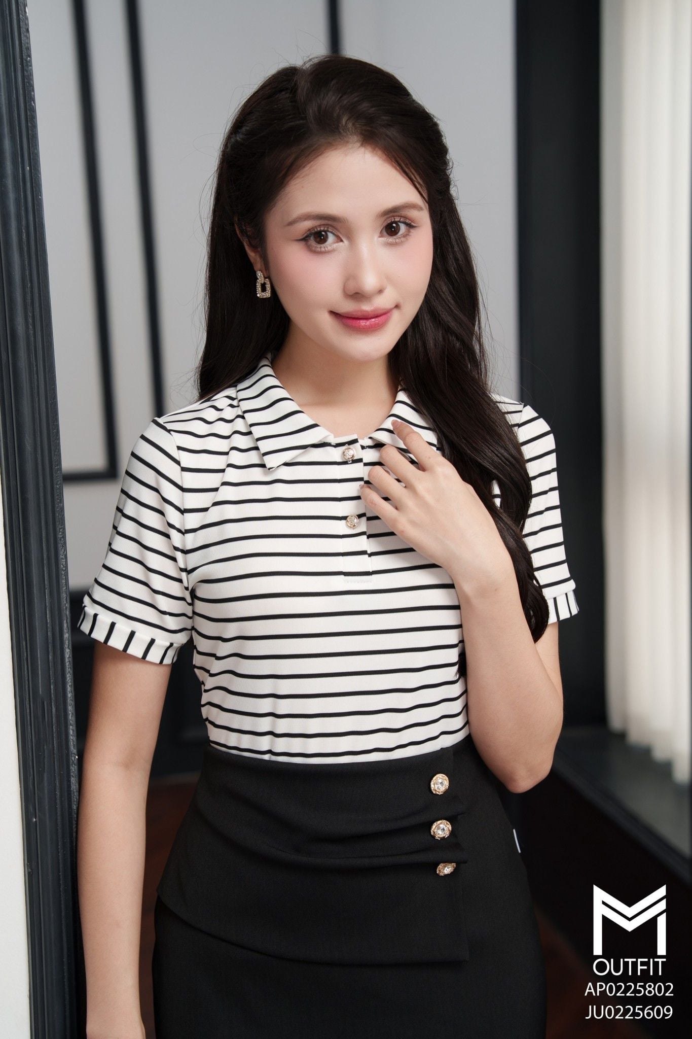 | Đặc điểm | Áo phông kẻ cổ bẻ đính cúc kim loại |