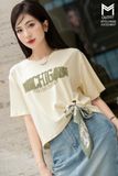 Áo phông ngắn tay crotop + kèm dây buộc nơ eo , freesize