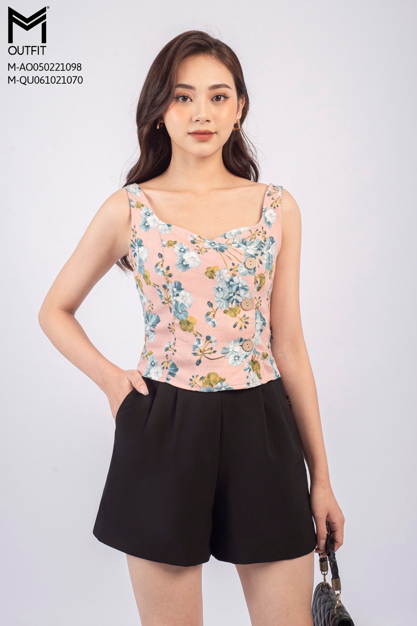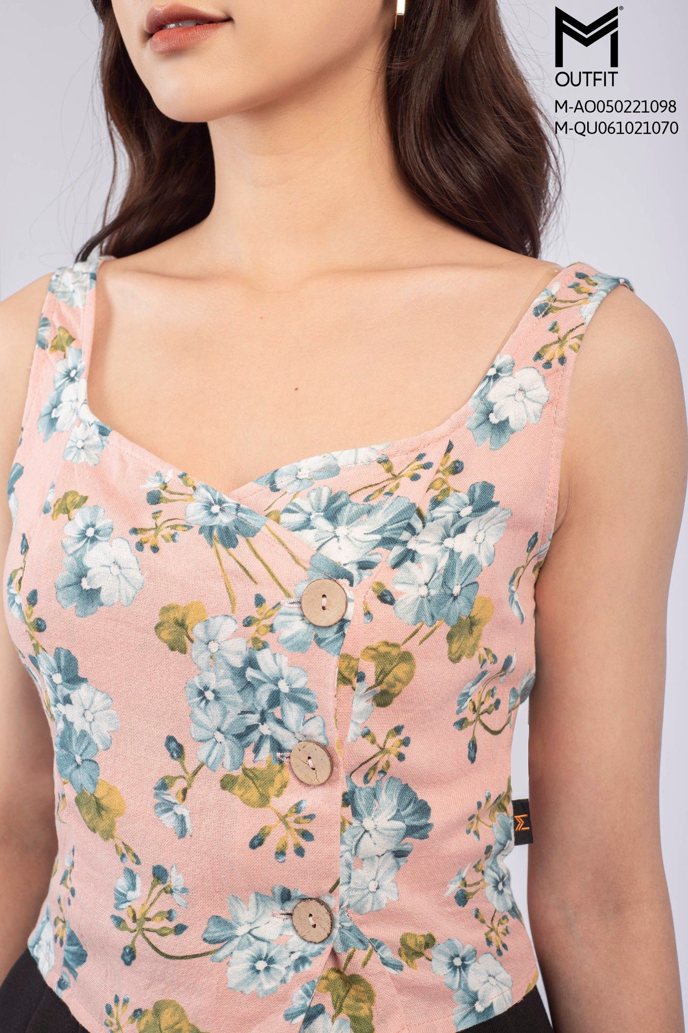 Áo sát nách cổ U, đính cúc gỗ Thiết kế năng động, trẻ trung. Thích hợp diện vào những ngày hè nóng bức