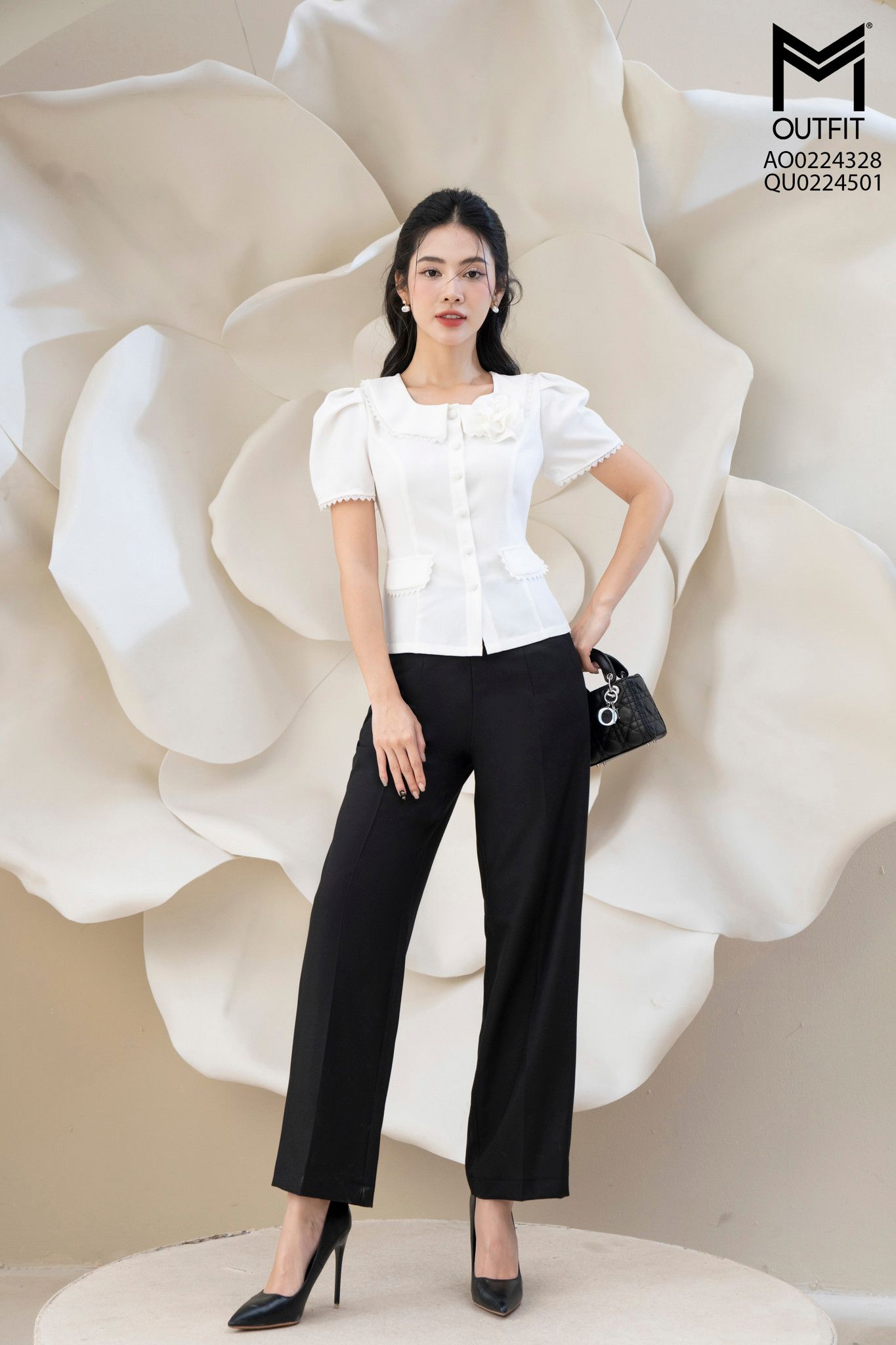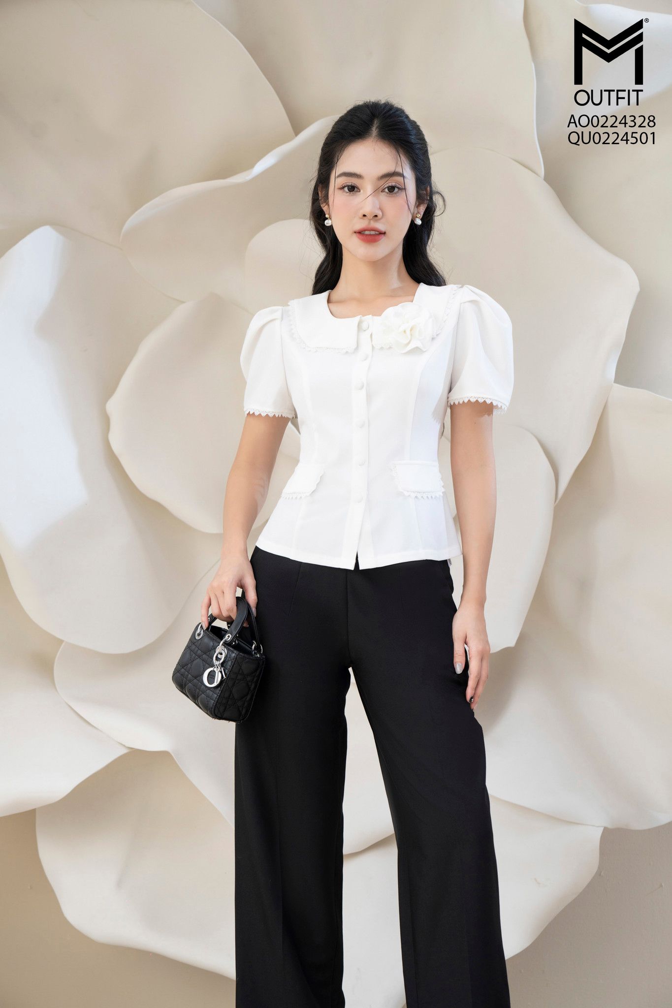 | Đặc điểm | Áo sơ mi cổ đính hoa cổ và nắp túi kẹp ren |