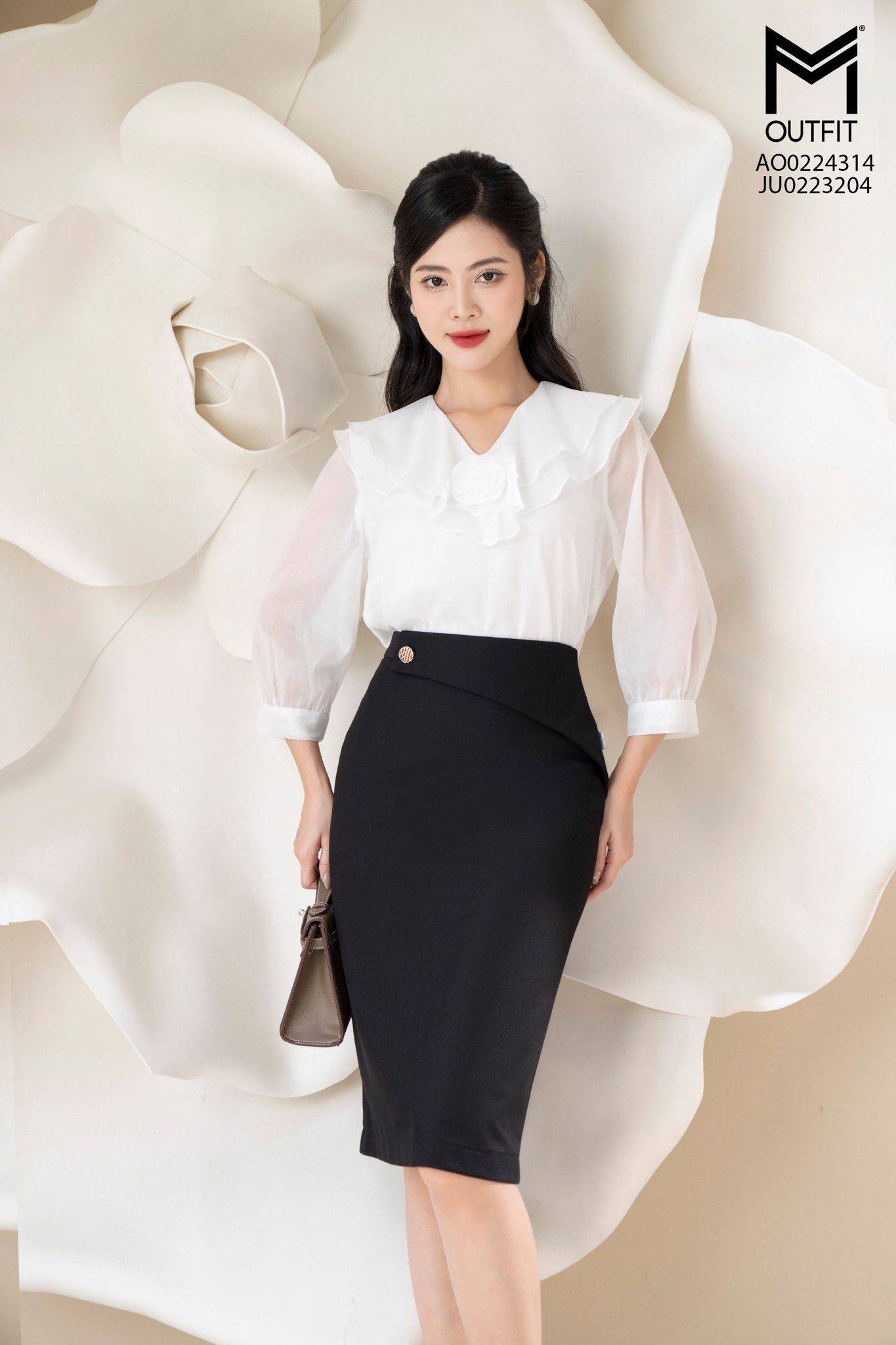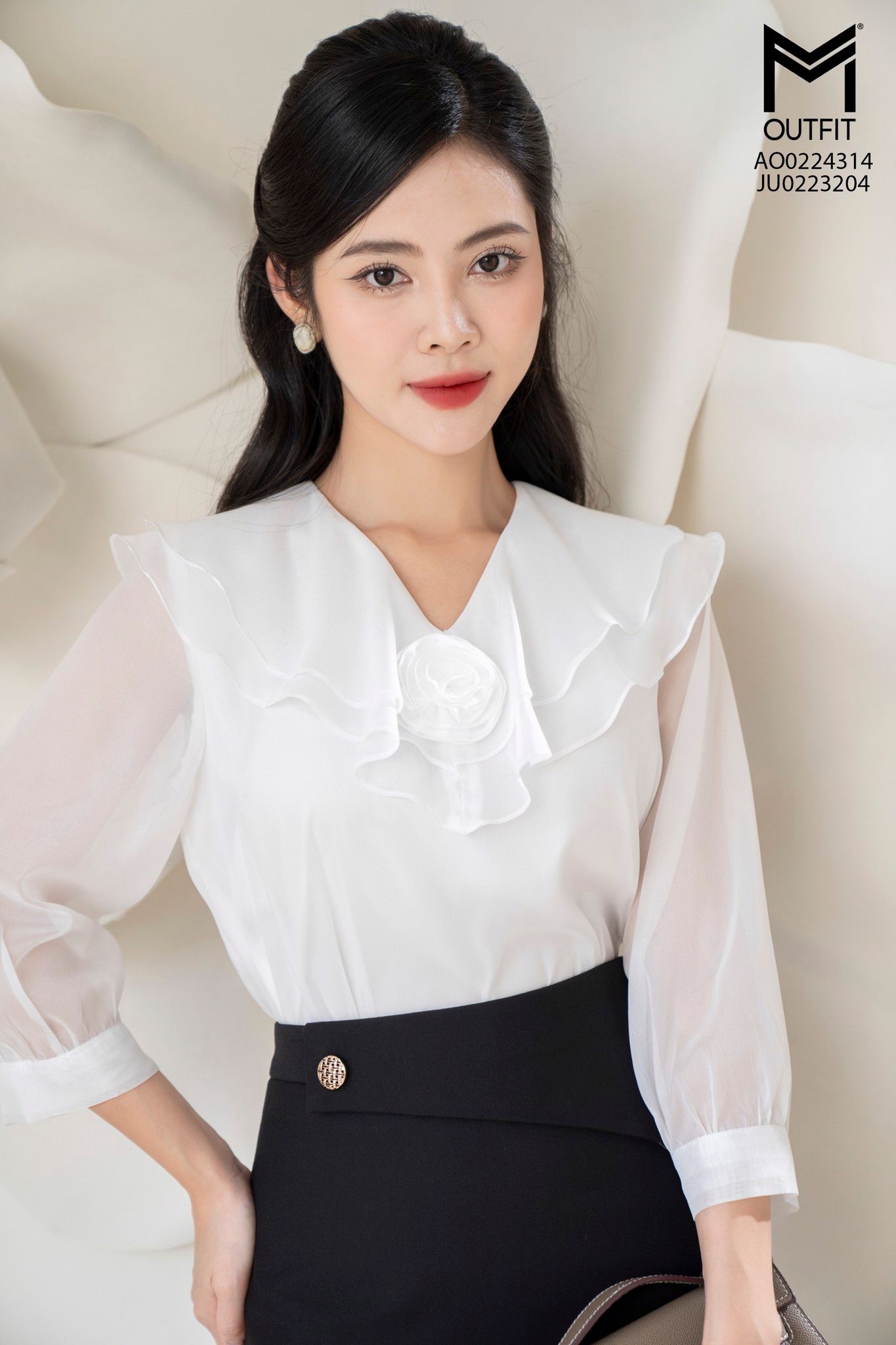| Đặc điểm | Áo sơ mi cổ đính hoa, hai lớp bèo |