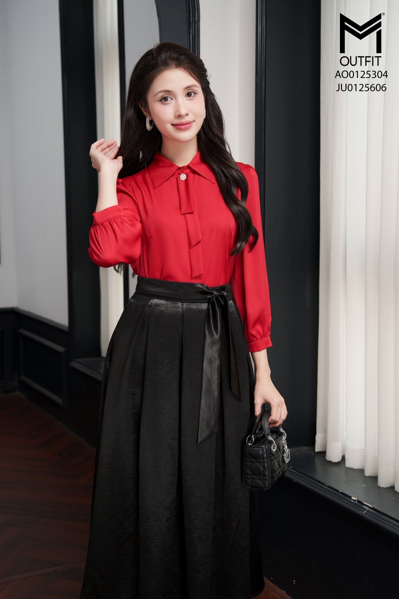 | Đặc điểm | Áo sơ mi cổ đức dáng ngắn tay lỡ đính nơ cổ |